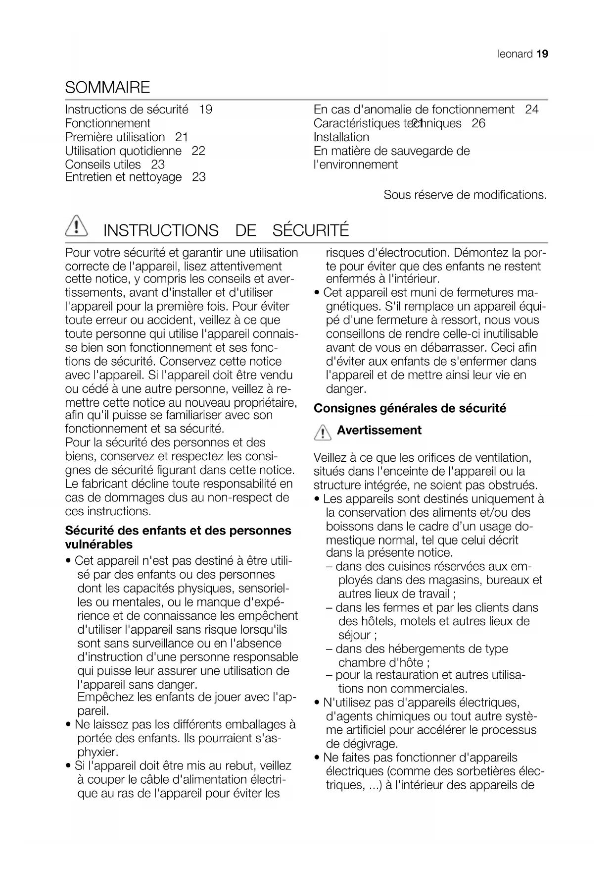 LK1201 - Réfrigérateur Leonard - Notice d'utilisation et mode d'emploi gratuit