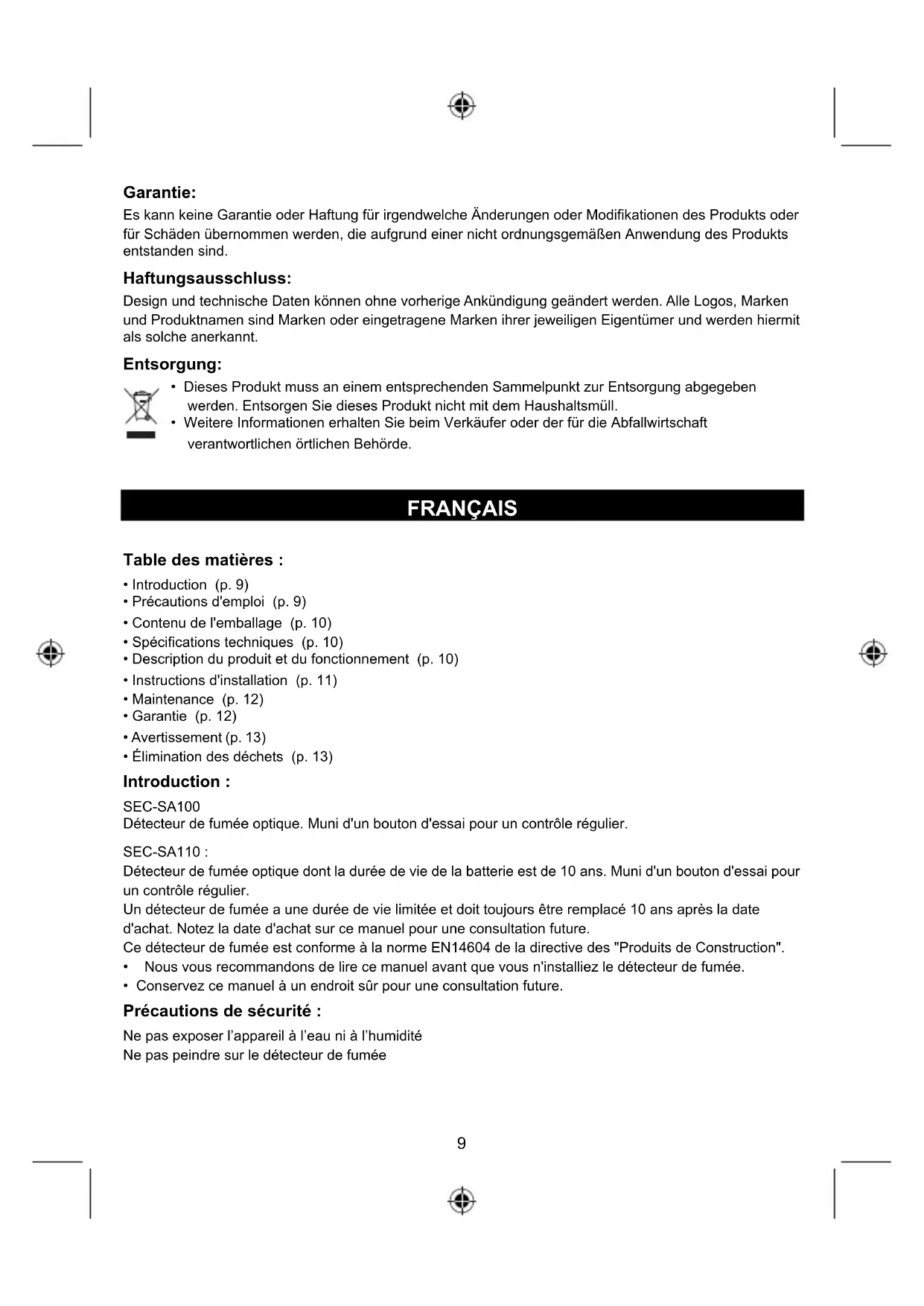 - Précautions d'emploi (p. 9)