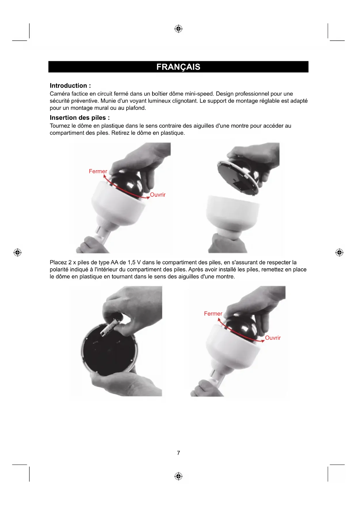 | Type de produit | Caméra de surveillance factice |