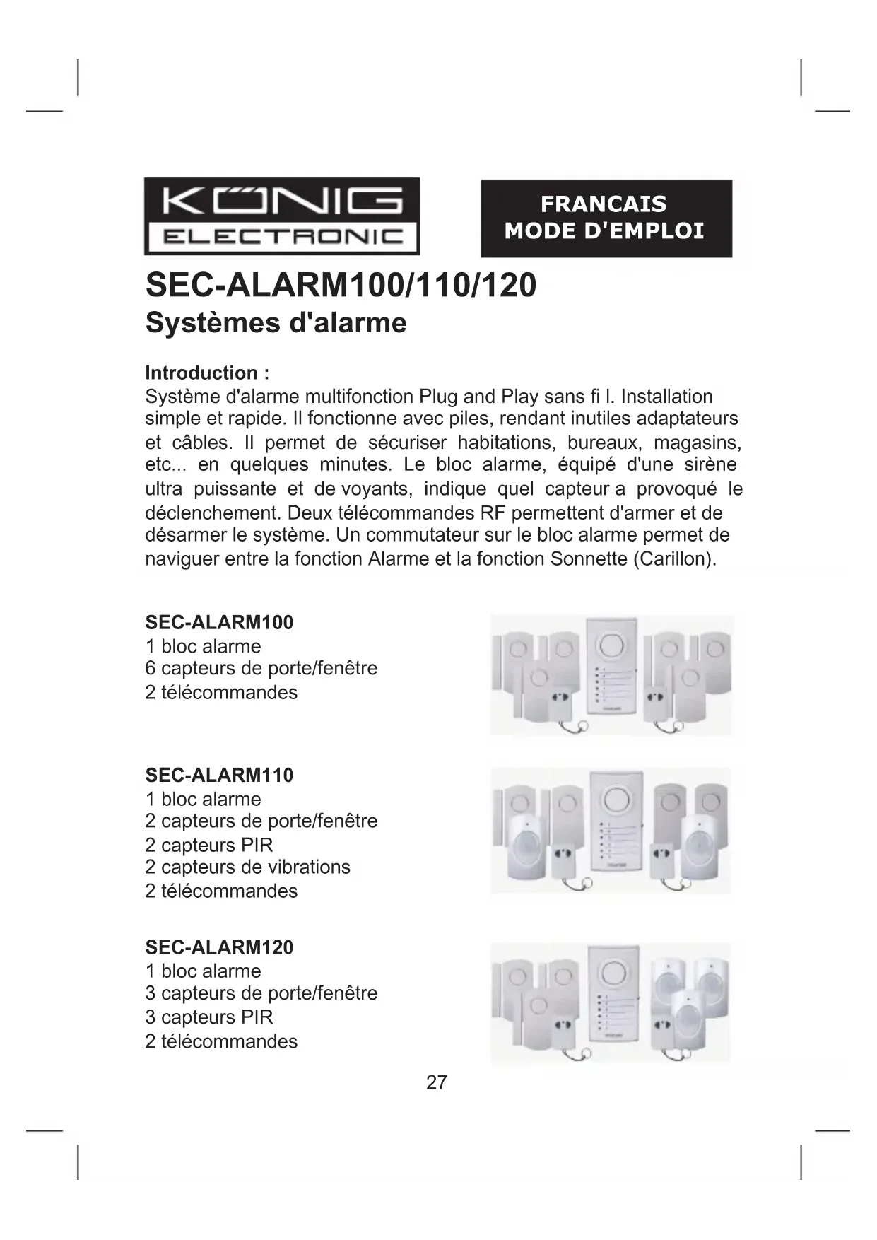 Retrouvez gratuitement la notice de l'appareil SECALARM120 KONIG au format PDF.