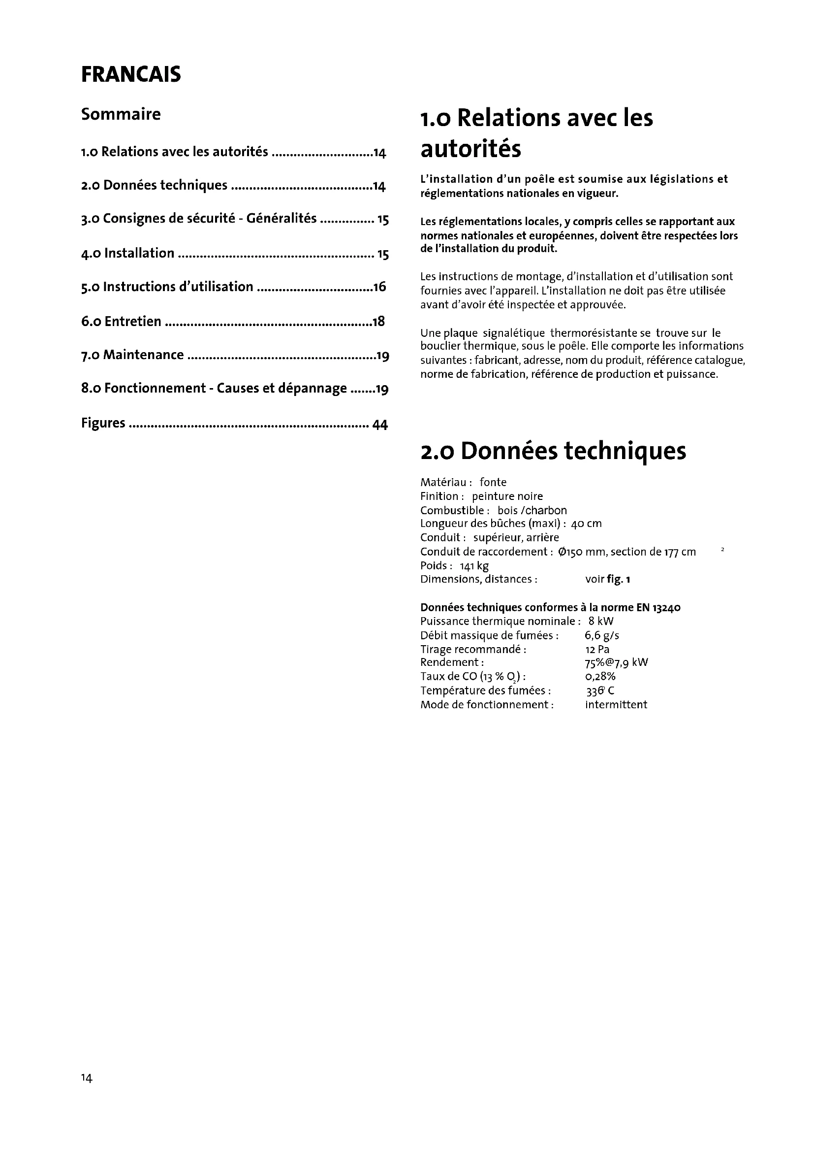 Produits points: lors de la première utilisation, le poèle peut diffuser un gaz irritant et dégager des odeurs désagréables. Ce gaz n'est pas toxique, mais il est recommendé de bien aérer la pierce. Laisser le poèle brûler avec un grand tirage jusqu'à ce qu'aucun gaz, fumée ou oedur ne puisse être détecté.