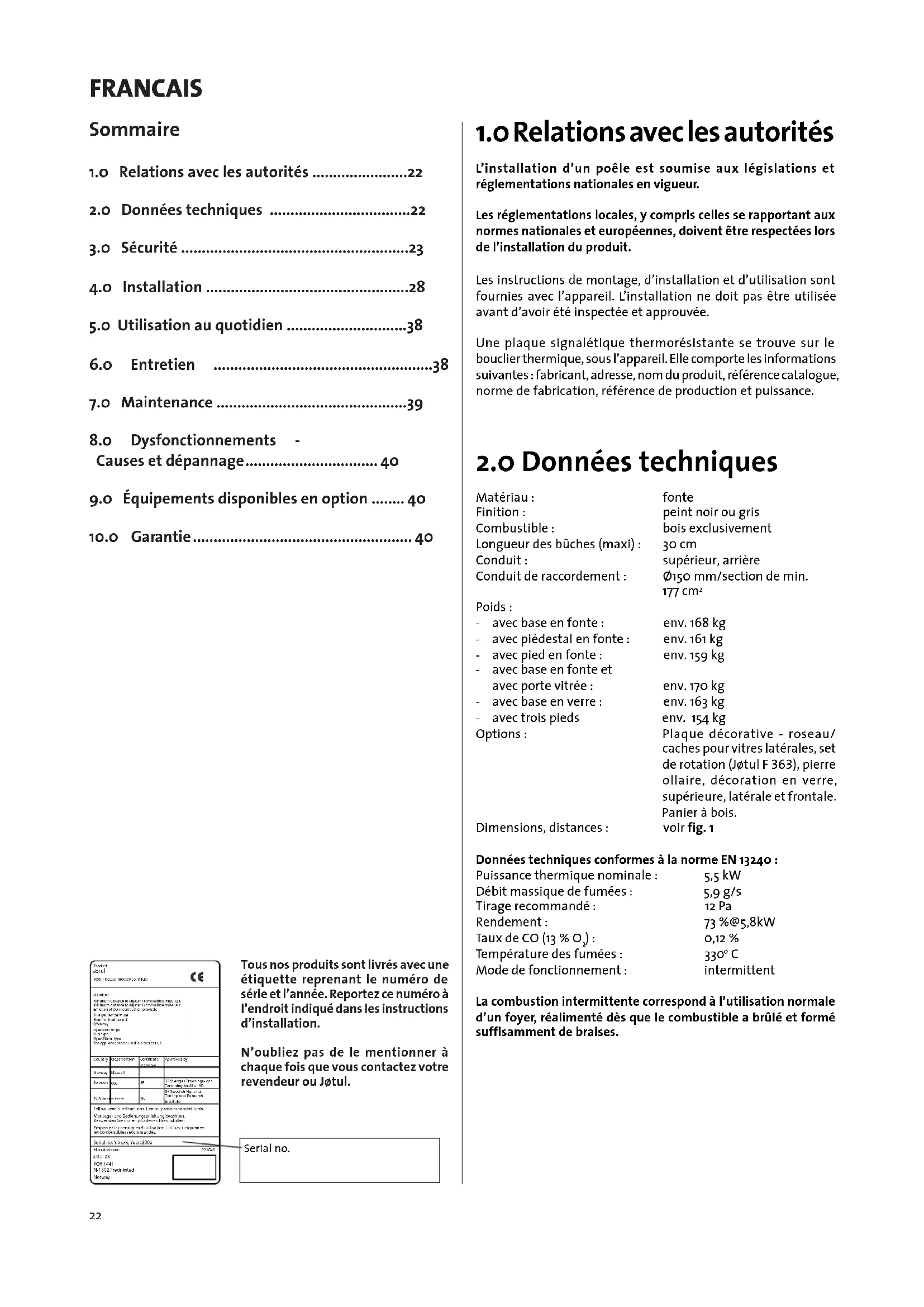 2.0 Données techniques 22