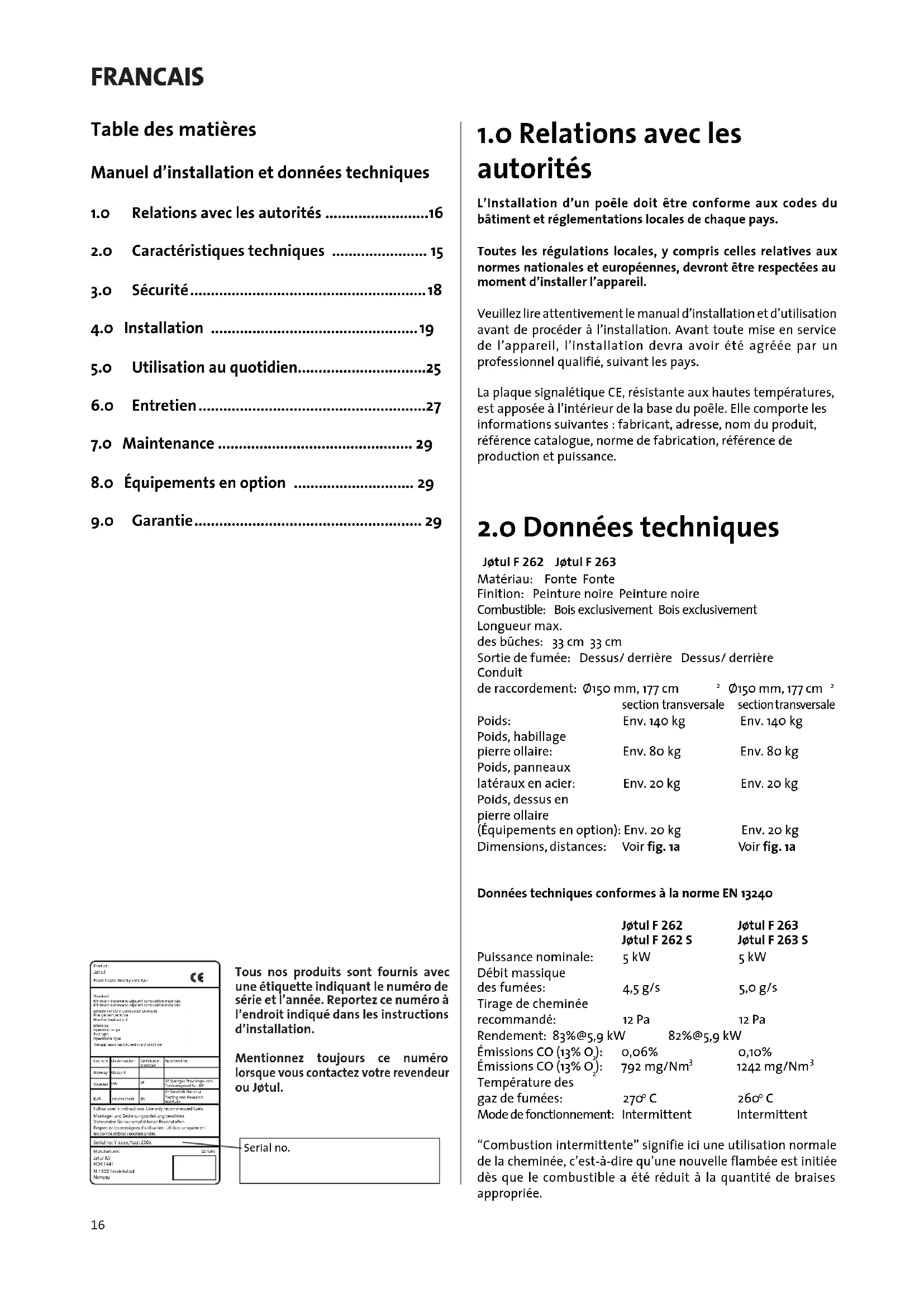 Mentionnez toujours ce numero lorsque vous contactez votre revendeur ou Jotul.