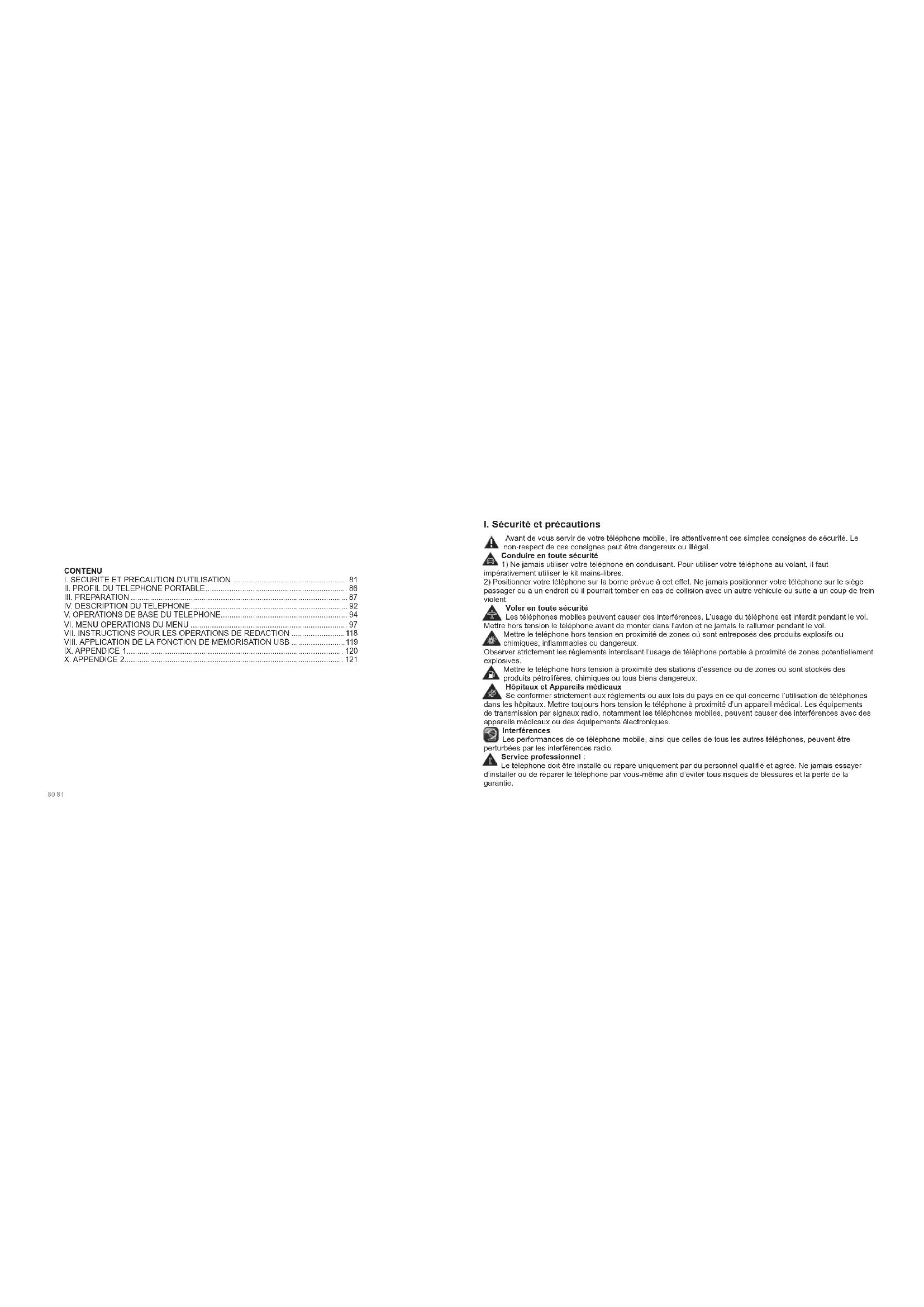 I. SECURITE ET PRECAUTION D'UTILISATION 81