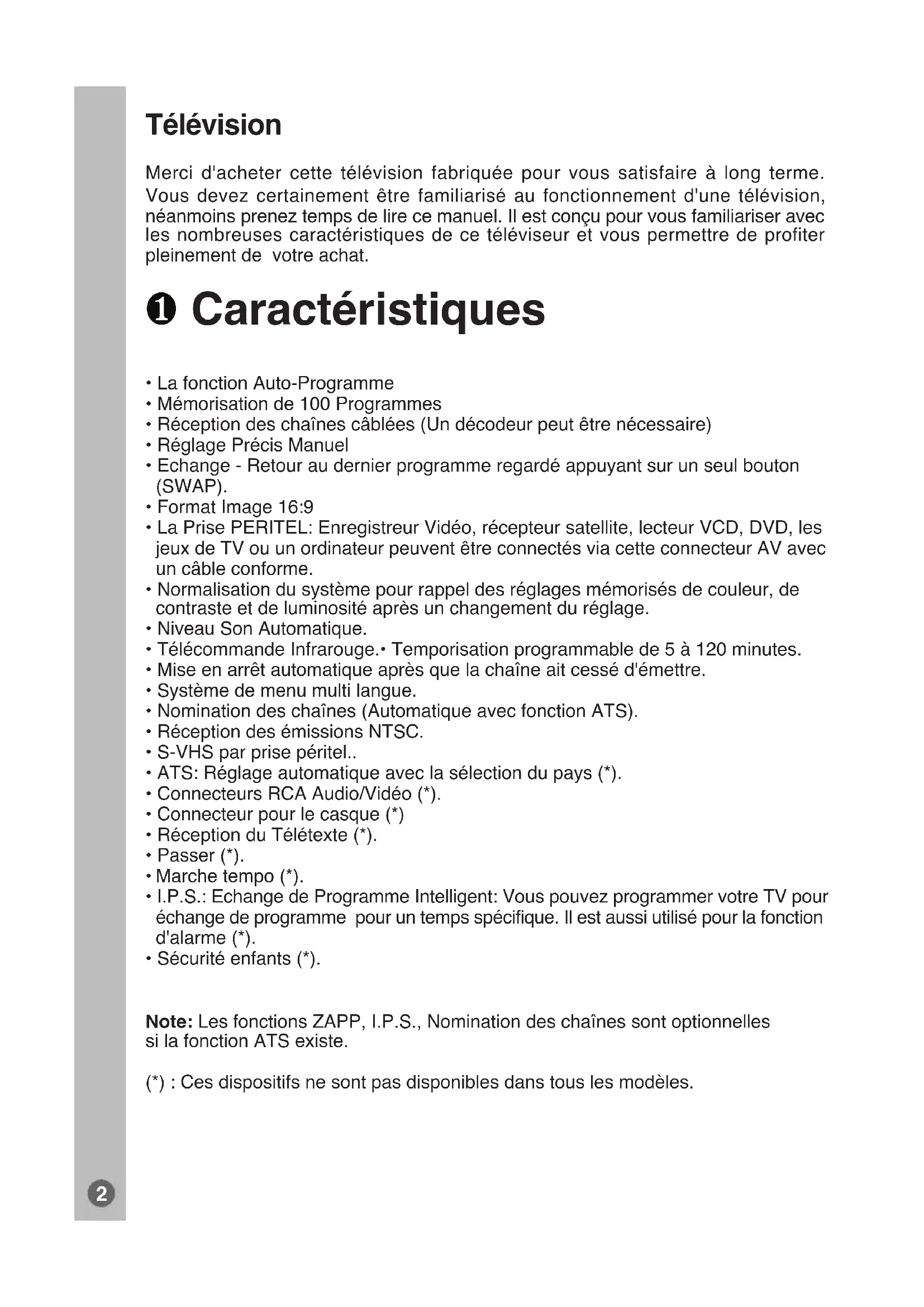 Merci d'acheter cette télévision fabriquée pour vous satisfaire à long terme. Vous doivent être familiarisés au fonctionnement d'une télévision, néanmoins prenez temps de dire ce manuel. Il est concu pour vous familiariser avec les nombreuses caractéristiques de ce téléviseur et vous permettre de profiter pleinement de votre achat.