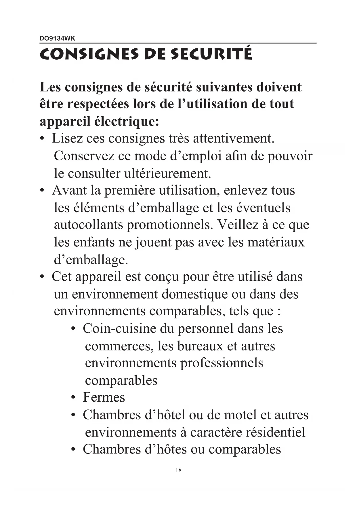 MODE D'EMPLOI DO9134WK DOMO