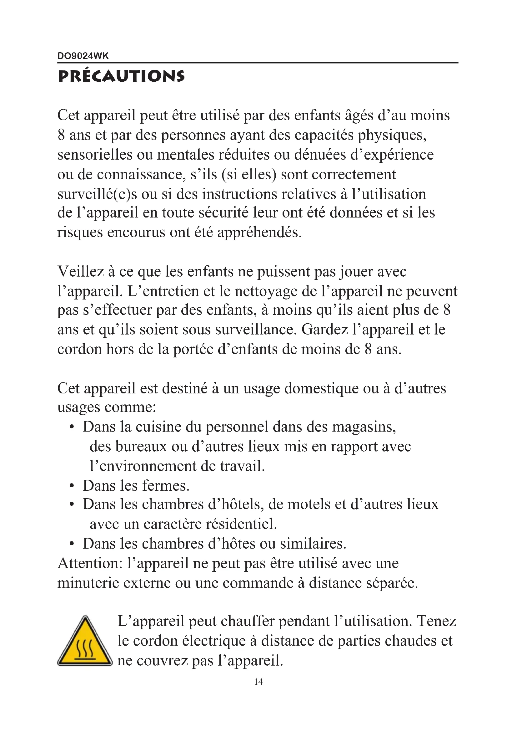 MODE D'EMPLOI DO9024WK DOMO