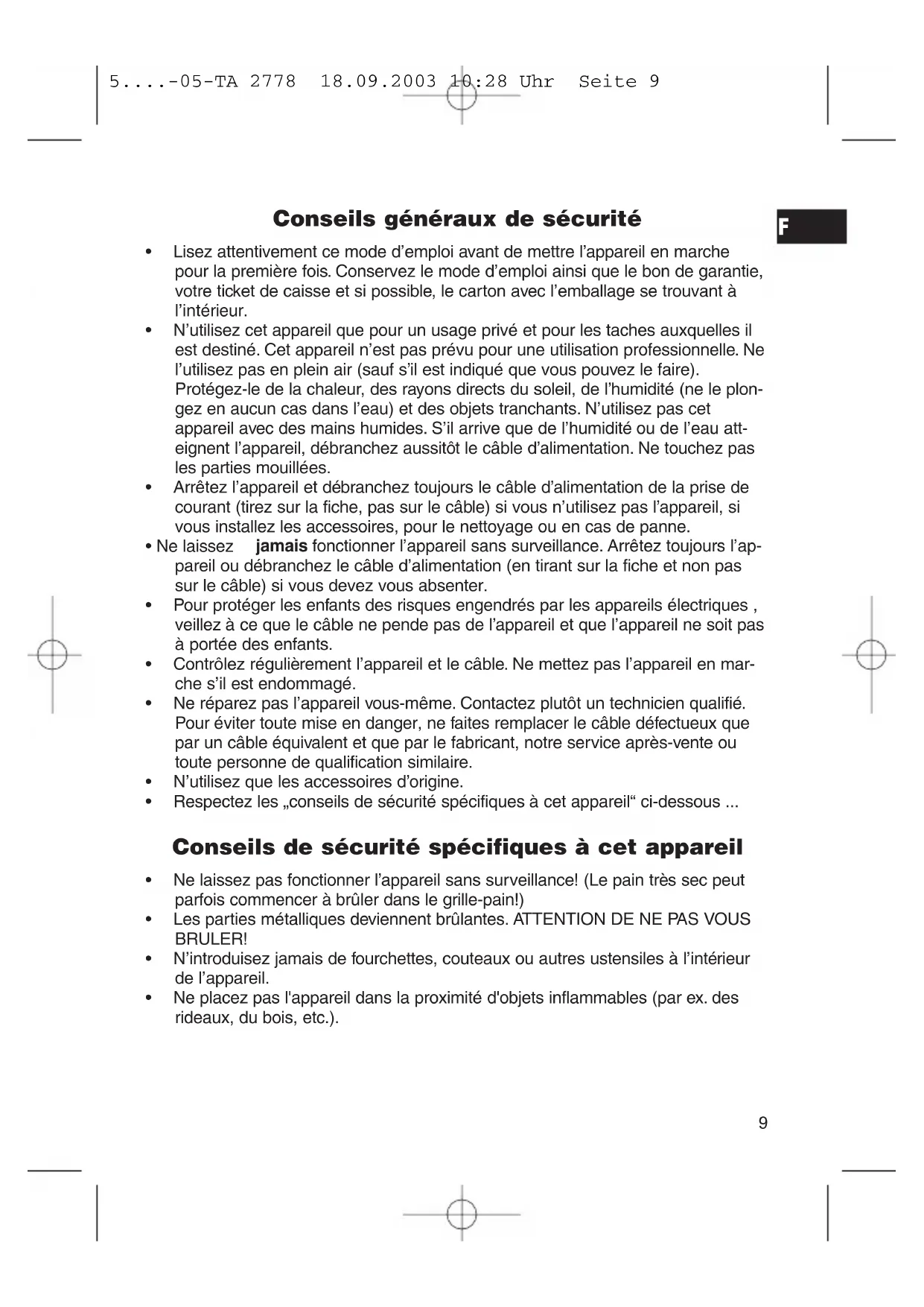 - Ne laissez pas fonctionner l'appareil sans surveillance! (Le pain très sec peut parfois commencer à brûler dans le grille-pain!)