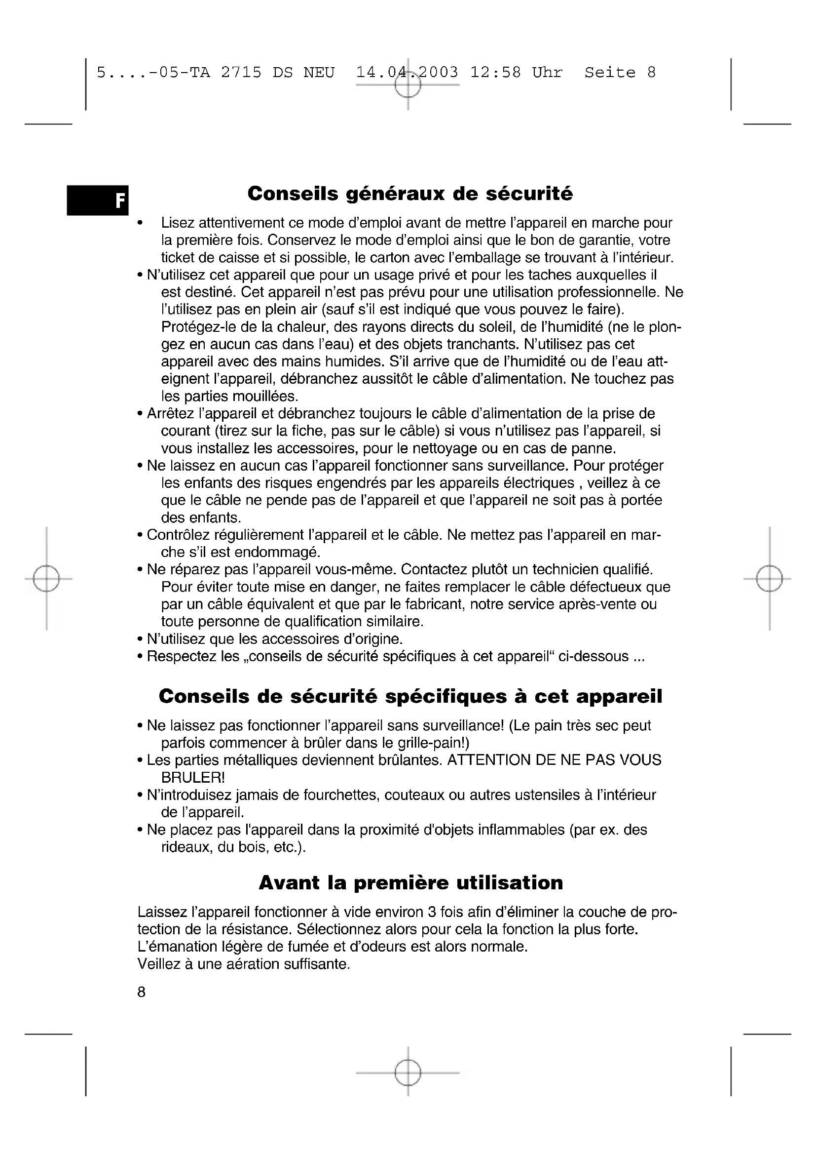 TA 2715 - Grille-pain CLATRONIC - Notice d'utilisation et mode d'emploi gratuit