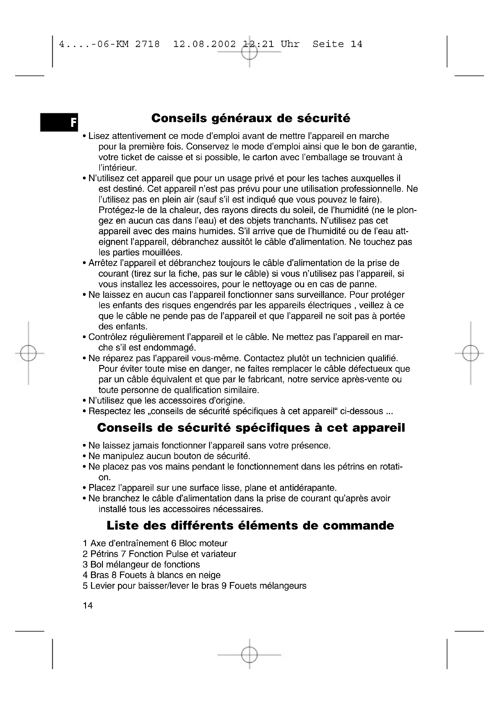 4....-06-KM 2718 12.08.2002 12:21 Uhr Seite 13Conseils généraux de sécurité