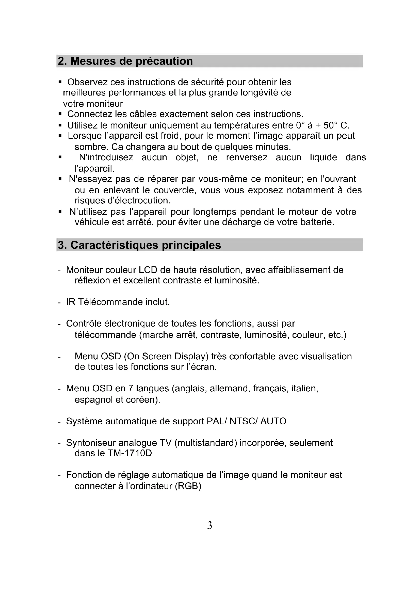 - Observez ces instructions de sécurité pour obtenir les valeurs performances et la plus grande longévite de votre moniteur