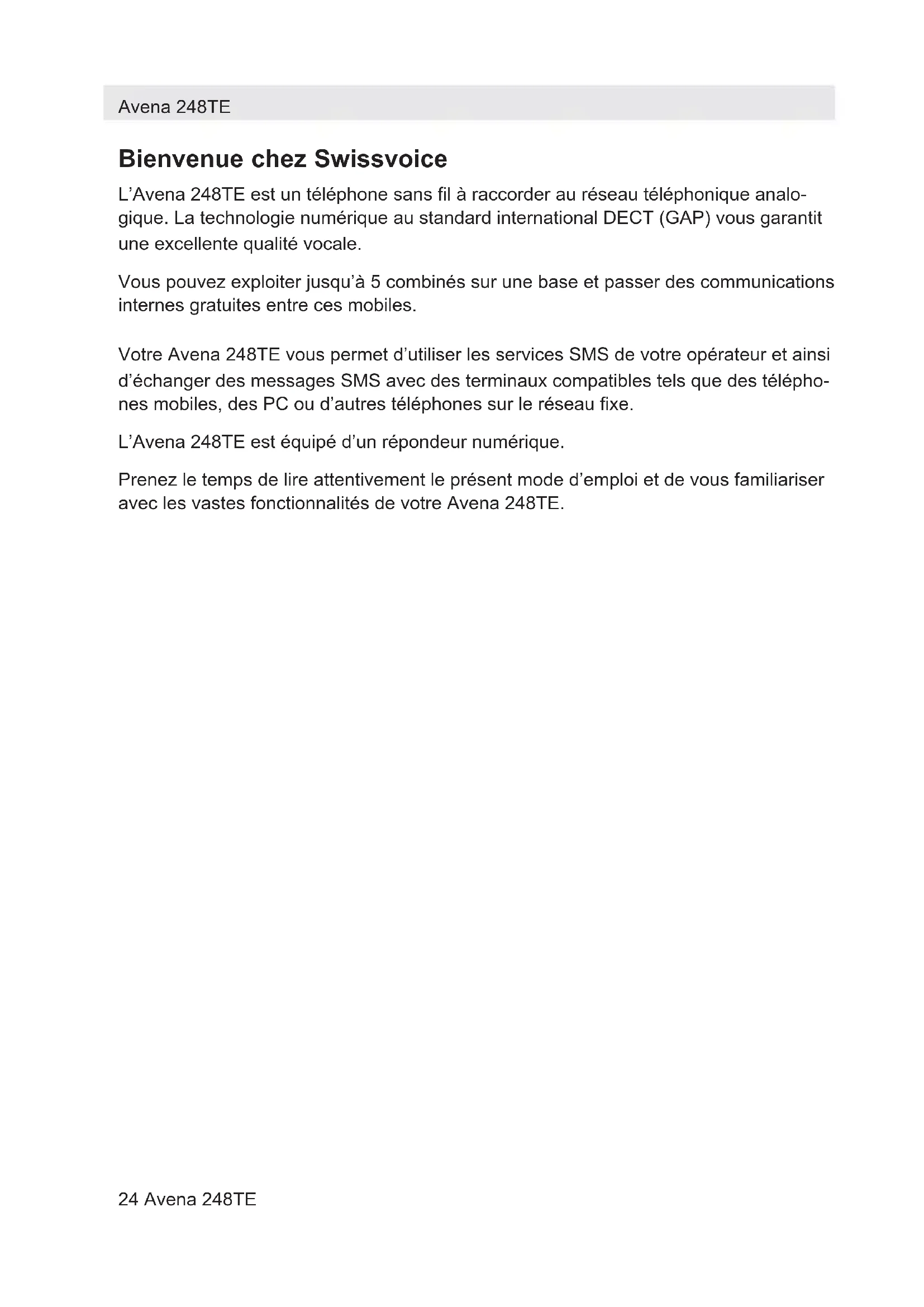 MODE D'EMPLOI Avena 248TE SWISSVOICE