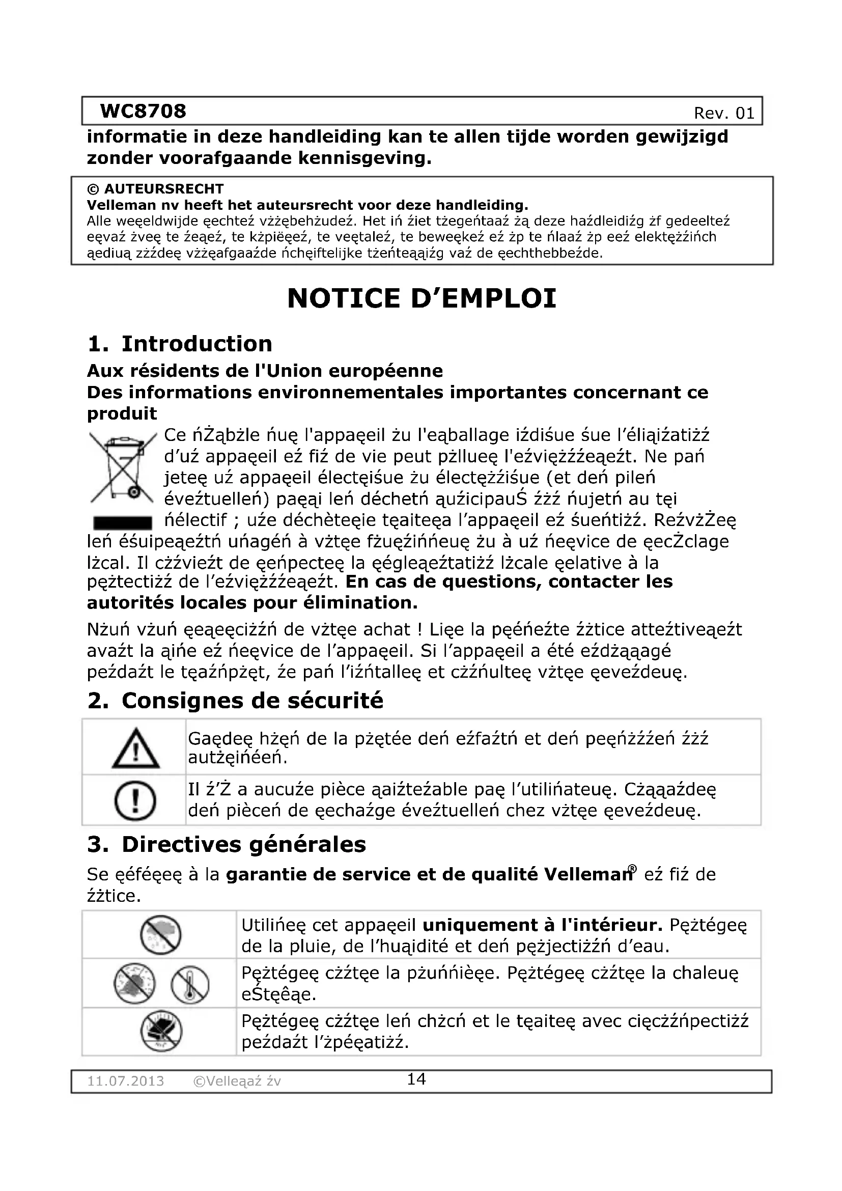 Retrouvez gratuitement la notice de l'appareil WC8708 VELLEMAN au format PDF.