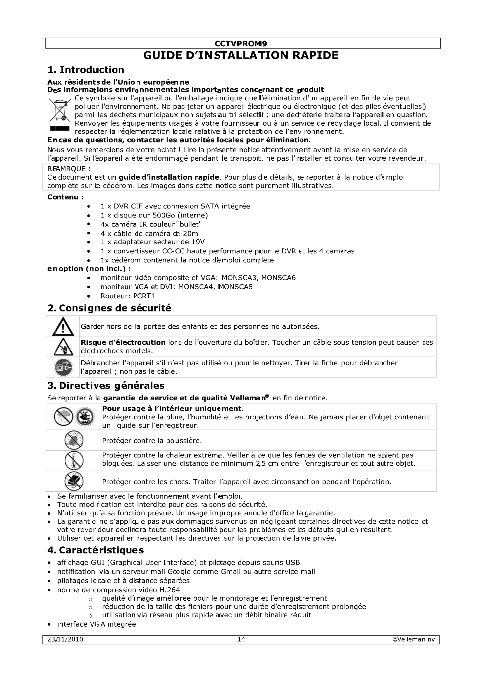 FOIRE AUX QUESTIONS - CCTVprom 9 VELLEMAN