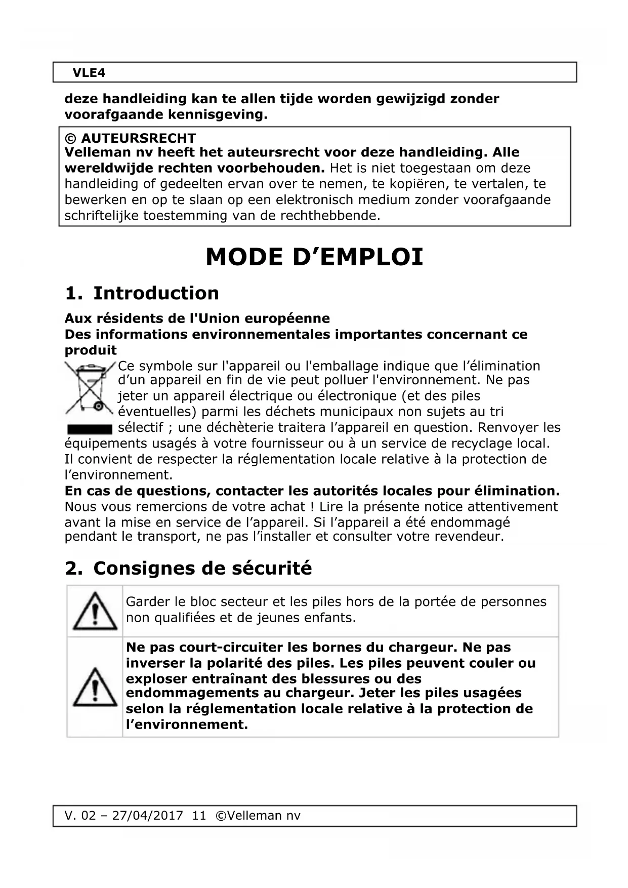 MODE D'EMPLOI VLE4 VELLEMAN