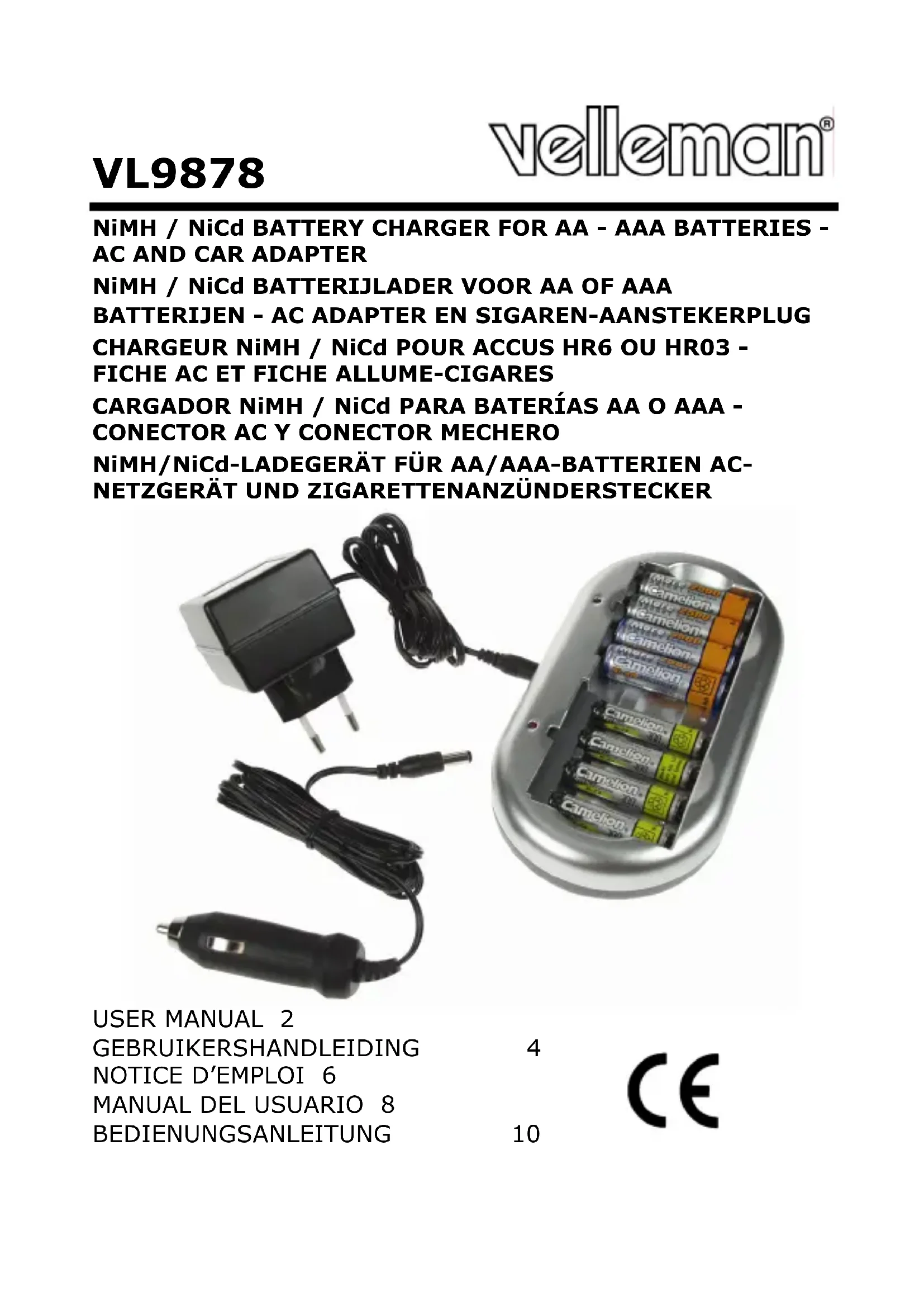 VL9878 - Chargeur de piles VELLEMAN - Notice d'utilisation et mode d'emploi gratuit