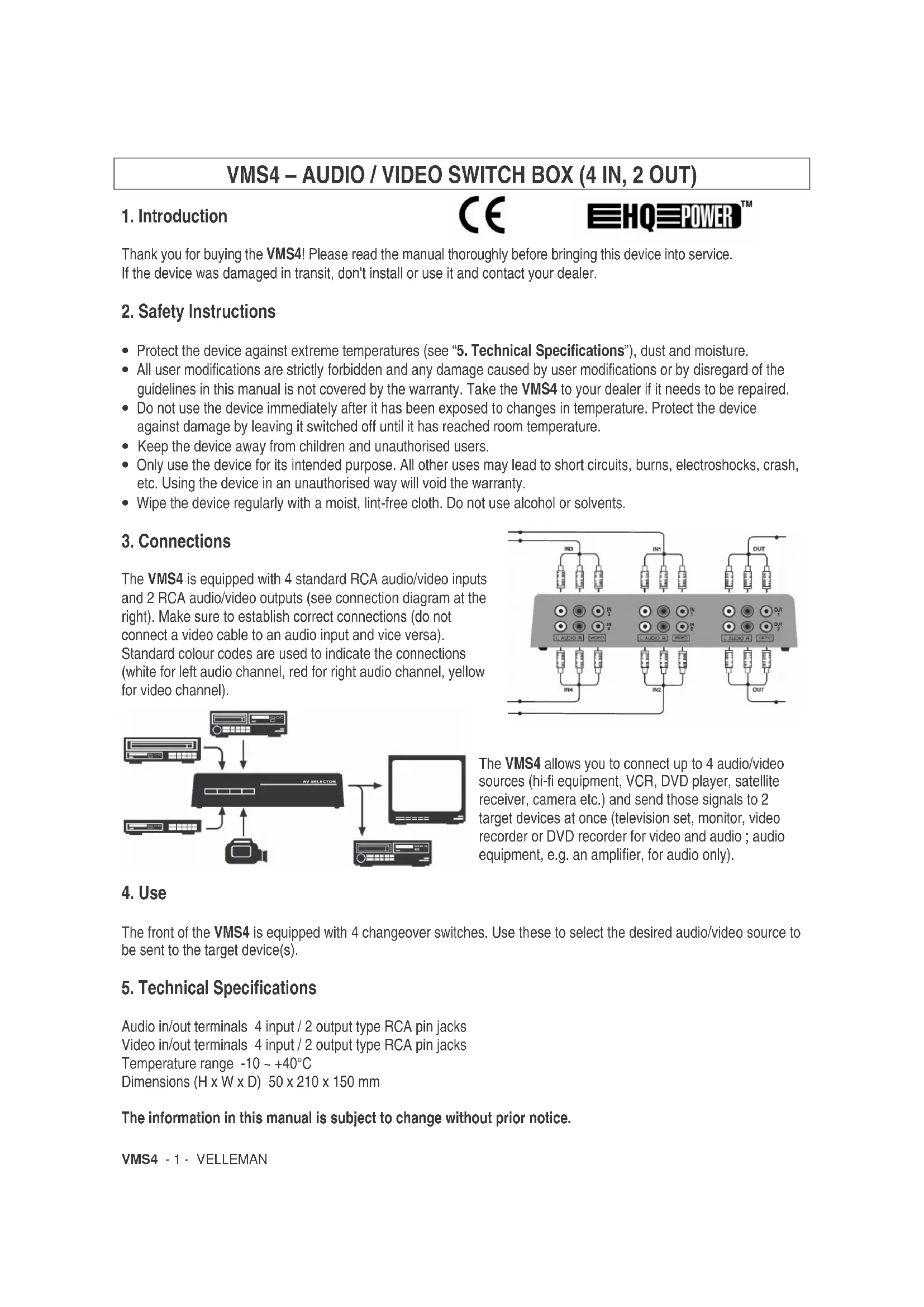 Retrouvez gratuitement la notice de l'appareil VMS4 VELLEMAN au format PDF.