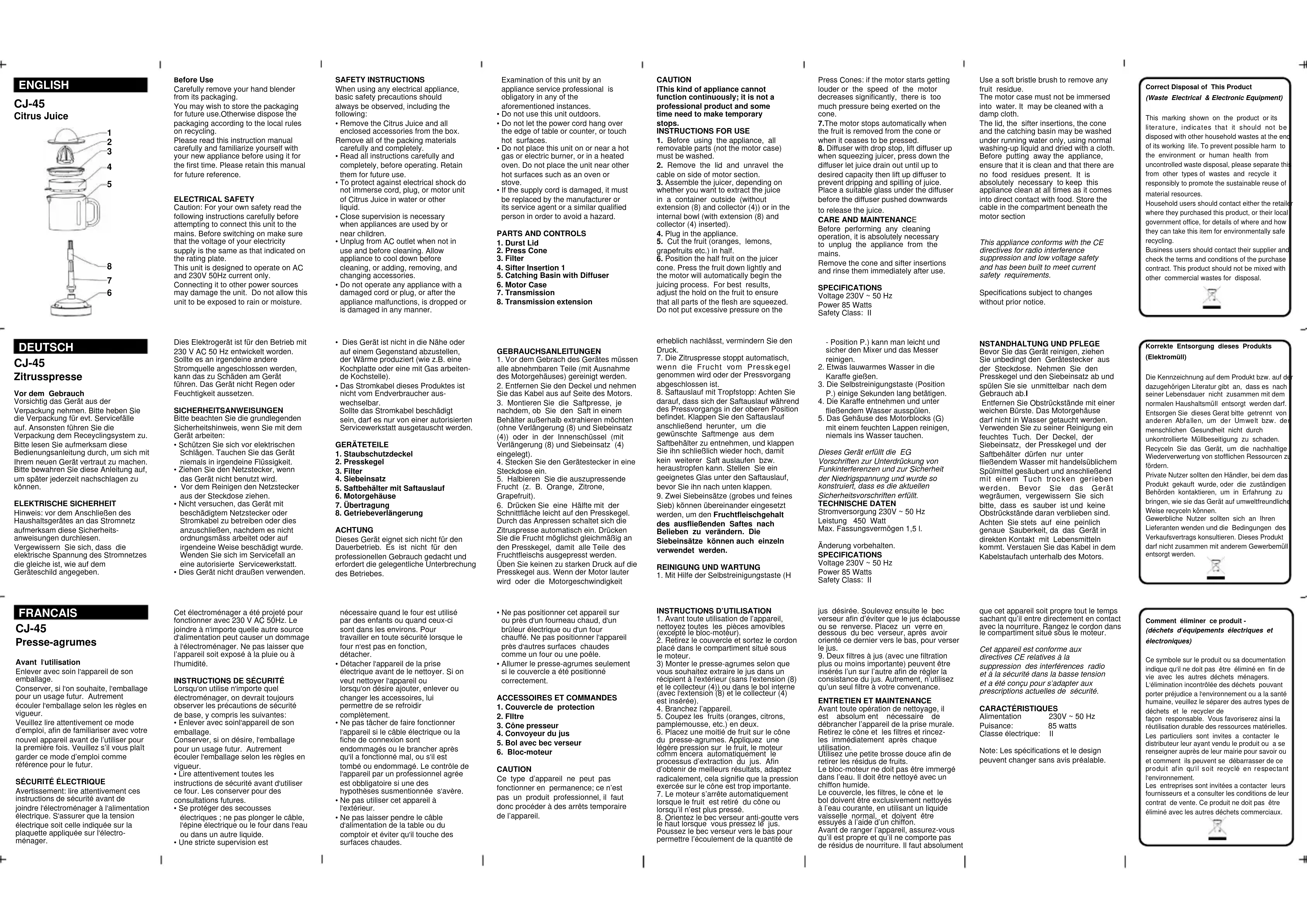 CJ45 - Extracteur de jus ROADSTAR - Notice d'utilisation et mode d'emploi gratuit