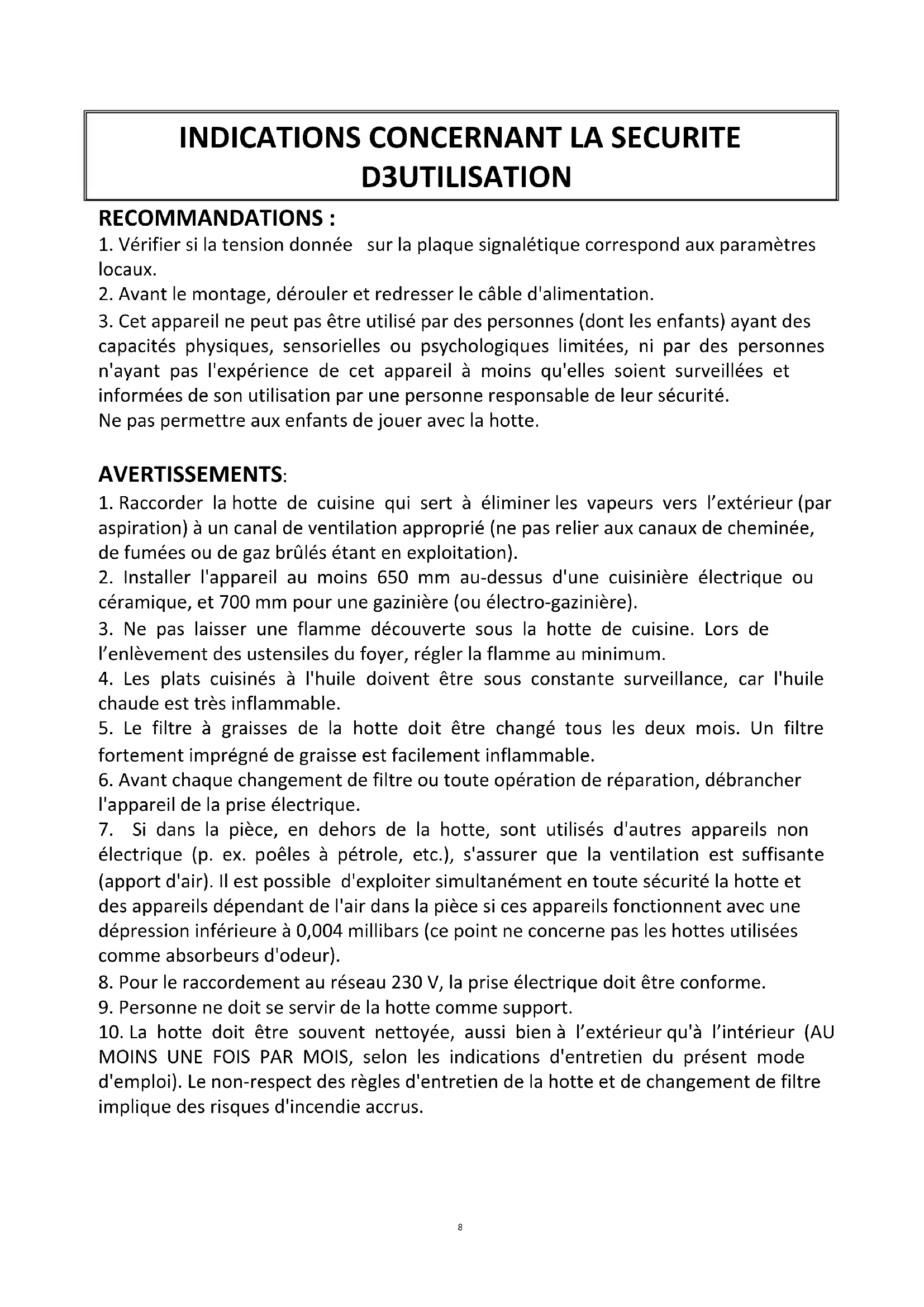9. Personne ne doit se servir de la hotte comme support.