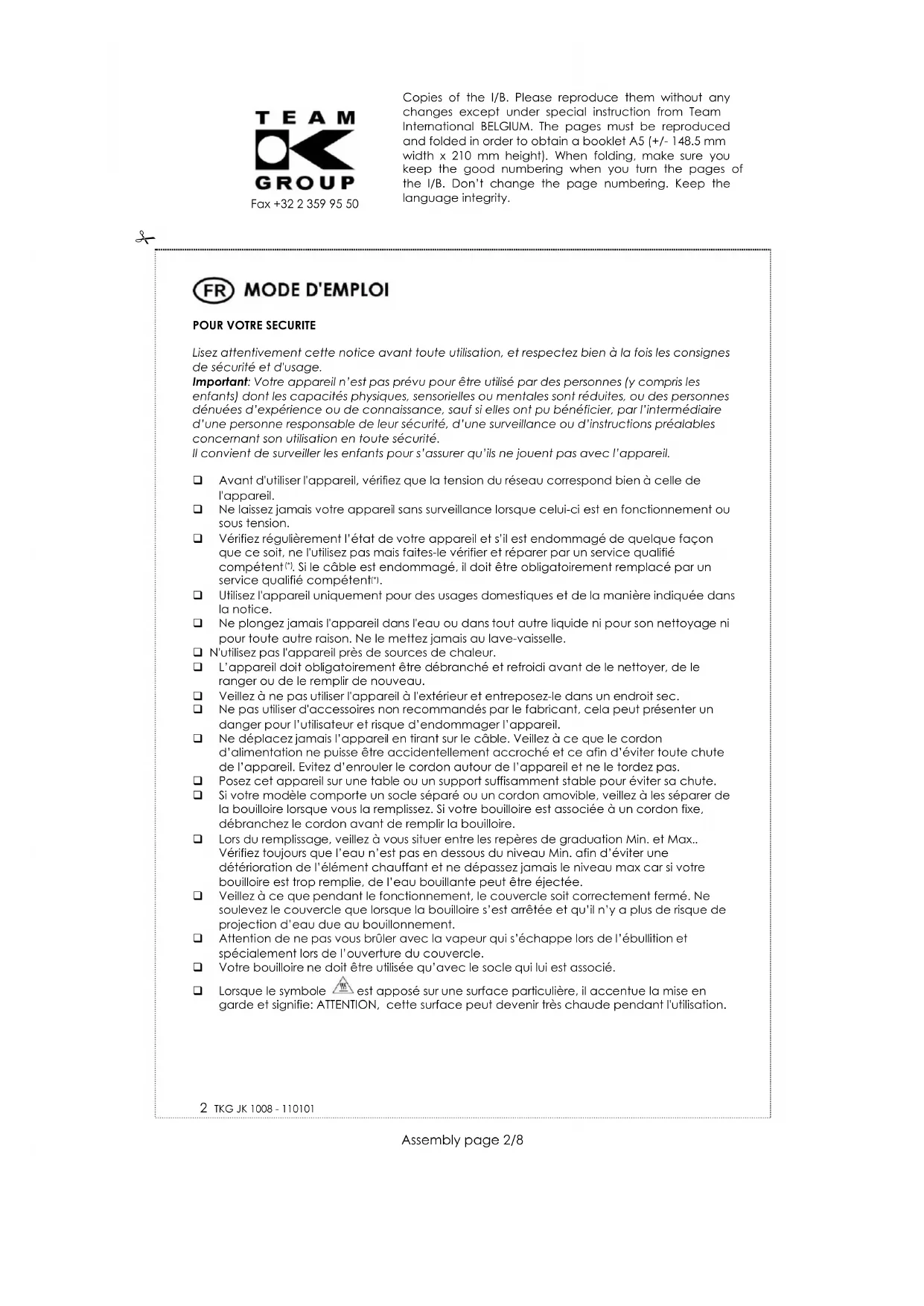 Retrouvez gratuitement la notice de l'appareil TKG JK 1008 KALORIK au format PDF.