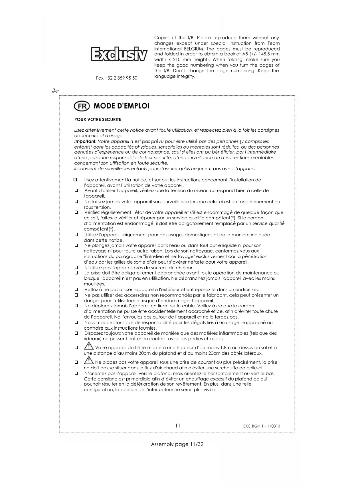 MODE D'EMPLOI EXC BQH 1 KALORIK