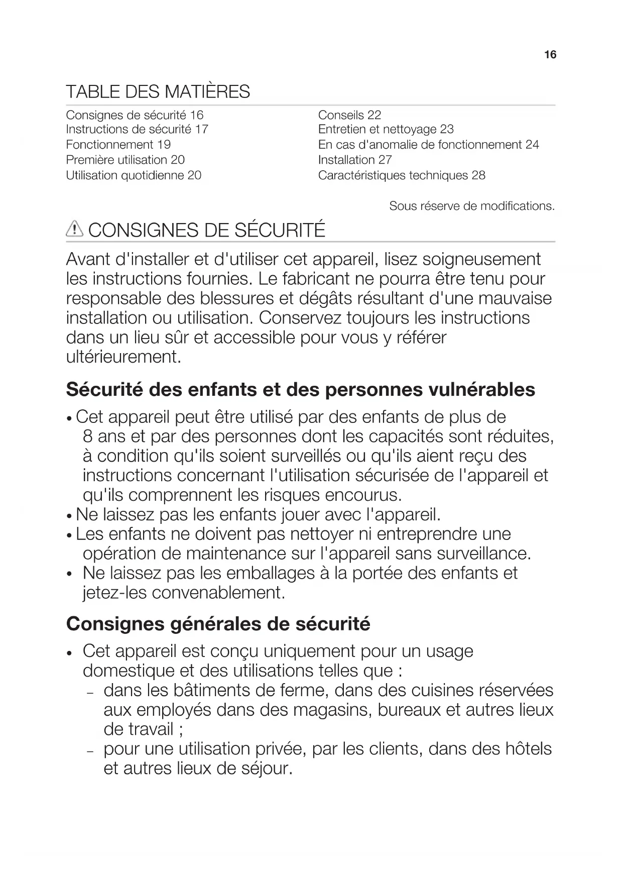 - Les enfants ne doivent pas nettoyer ni entreprises une opération de maintenance sur l'appareil sans surveillance.