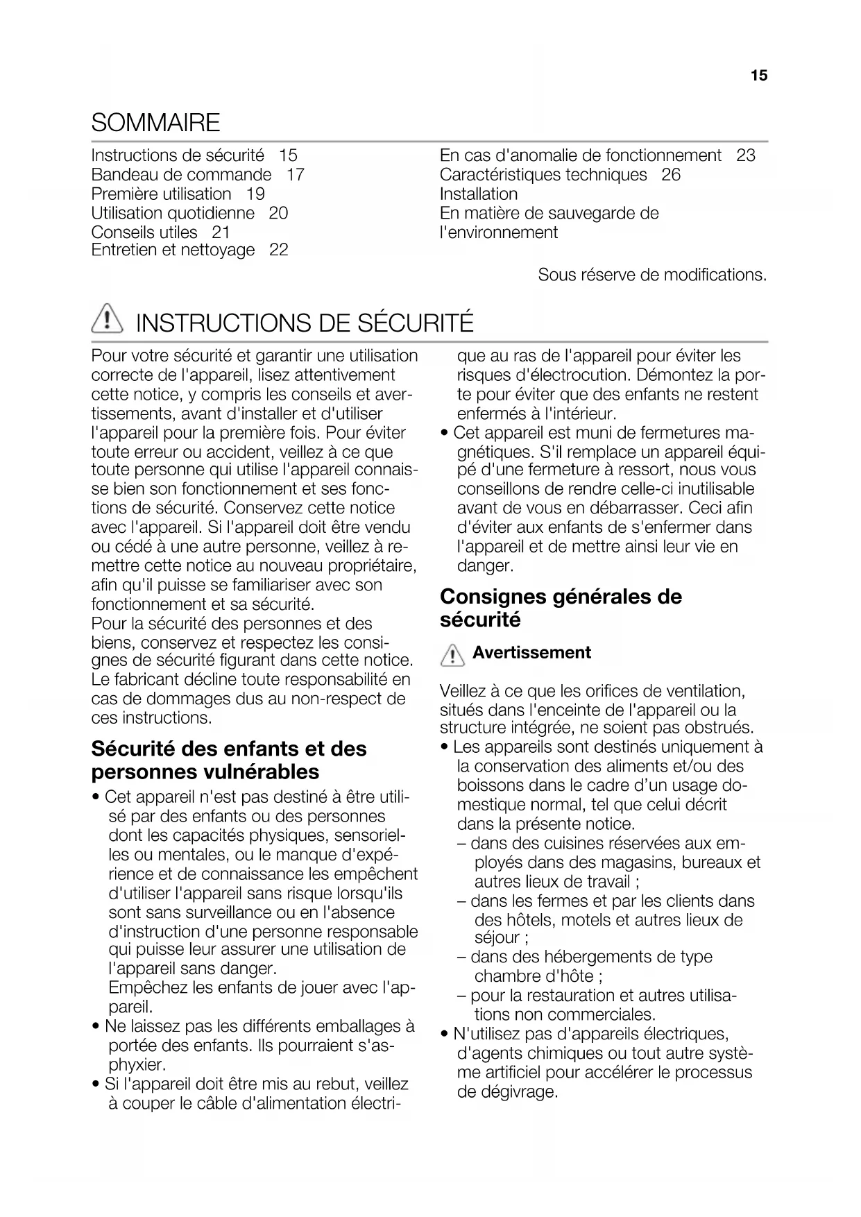 Pour votre sécurité et garantir une utilisation correcte de l'appareil, lisez attentivement cette notice, y compris les conseils et aver- tissements, avant d'installer et d'utiliser l'appareil pour la première fois. Pour éviter toute erreur ou accident, veillez à ce que toute personne qui utilise l'appareil connais- se bien son fonctionnement et ses fonc- tions de sécurité. Conservez cette notice avec l'appareil. Si l'appareil doit être vendu ou cédé à une autre personne, veillez à re- mettre cette notice au nouveau propriétaire, afin qu'il puisse se familiariser avec son fonctionnement et sa sécurité. Pour la sécurité des personnes et des biens, conservez et respectez les consi- gnes de sécurité figurant dans cette notice. Le fabricant décline toute responsabilité en cas de dommages dus au non-respect de ces instructions. Sécurité des enfants et des personnes vulnérables