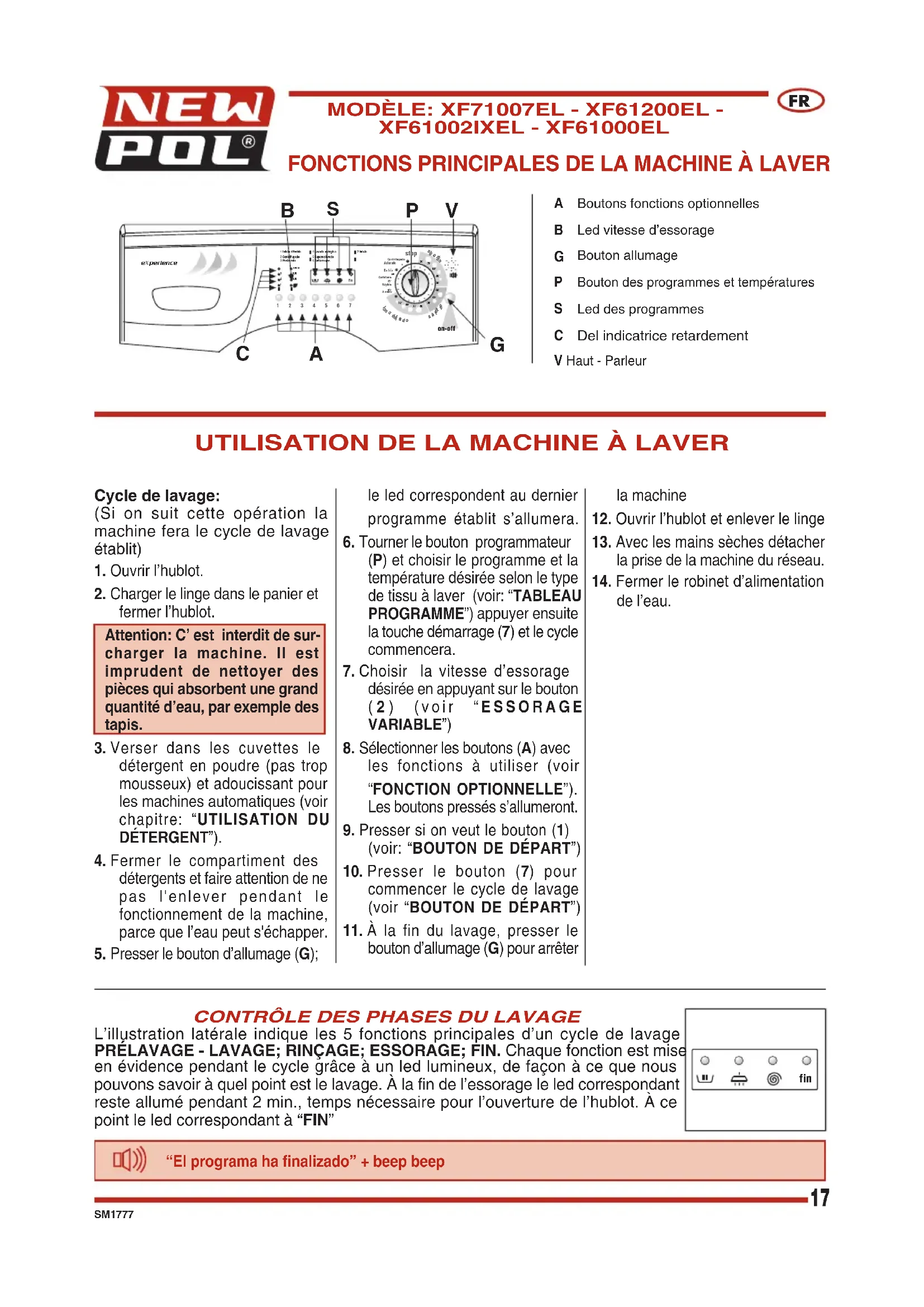 XF71007EL - Machine à laver NEW POL - Notice d'utilisation et mode d'emploi gratuit