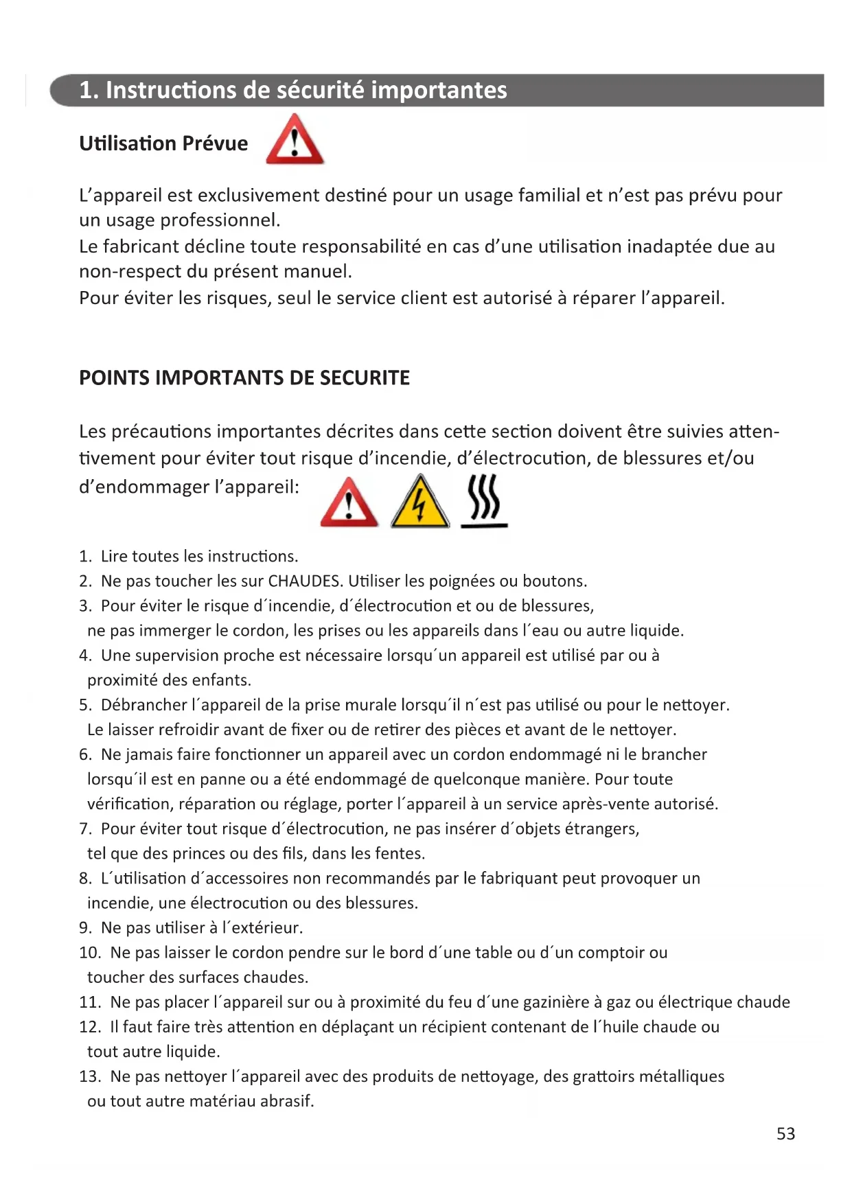 1. Instructions de sécurité importantes