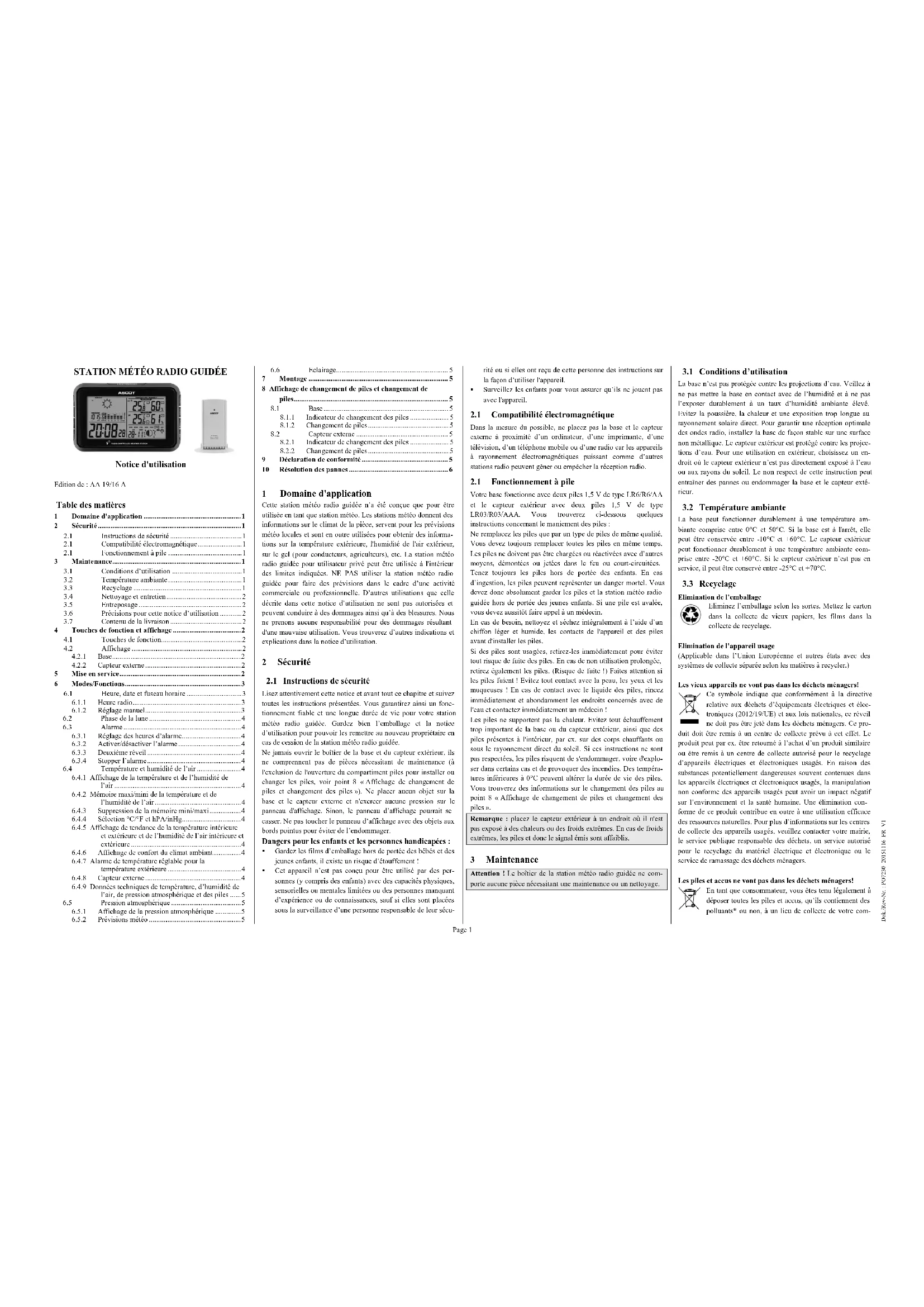 Lisez attentivement cette notice et avons tout ce chapitre et suivez toutes les instructions précités. Vous garantisse ainsi un fonctionnement libre et une longue durée de vie pour votre station météo radio guide. Gardez bien l'emballage et la notice d'utilisation pour pouvoir les rémettre au nouveau propriétaire en cas de cession de la station météo radio guide.