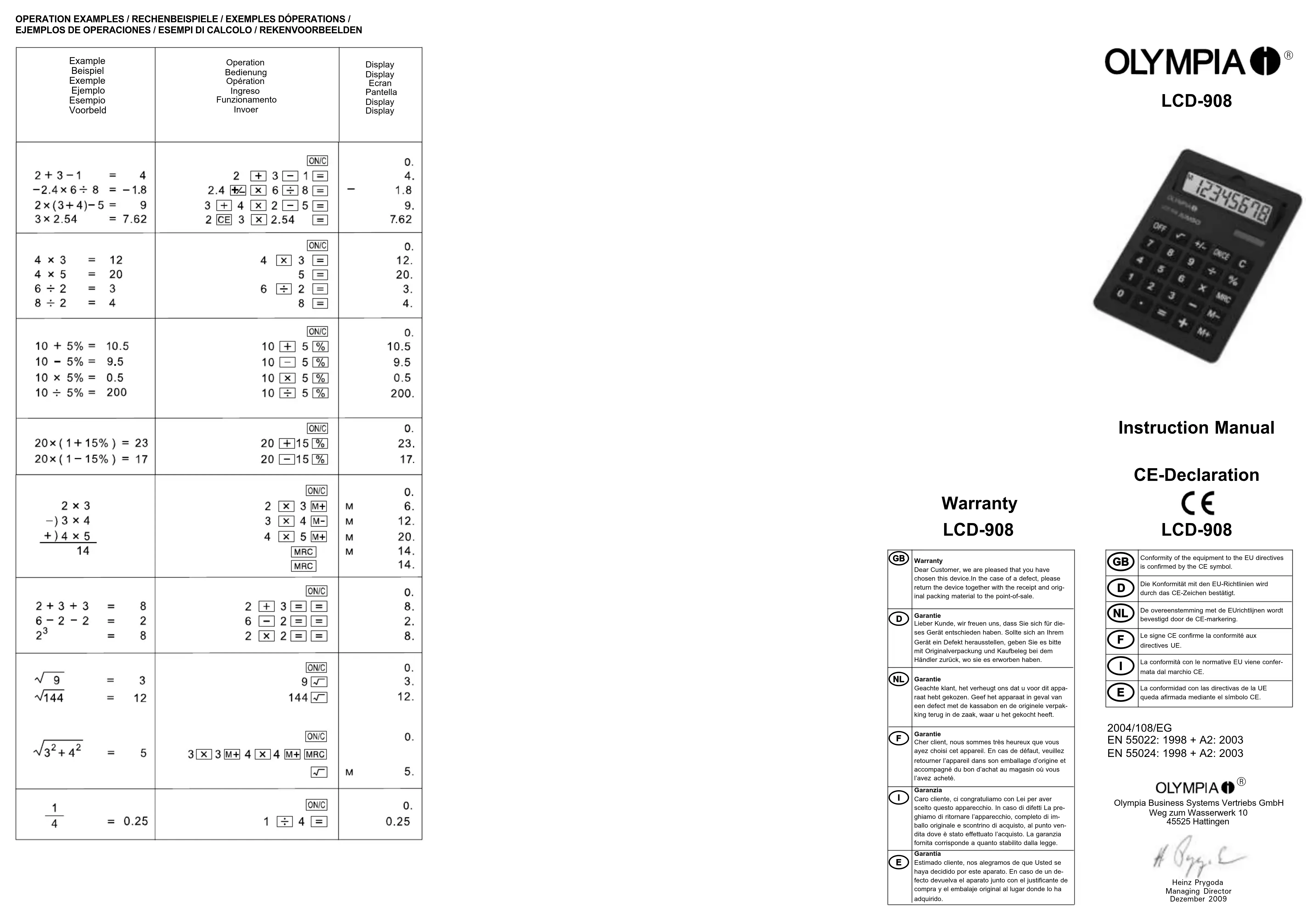 LCD−908 - Calculatrice OLYMPIA - Notice d'utilisation et mode d'emploi gratuit