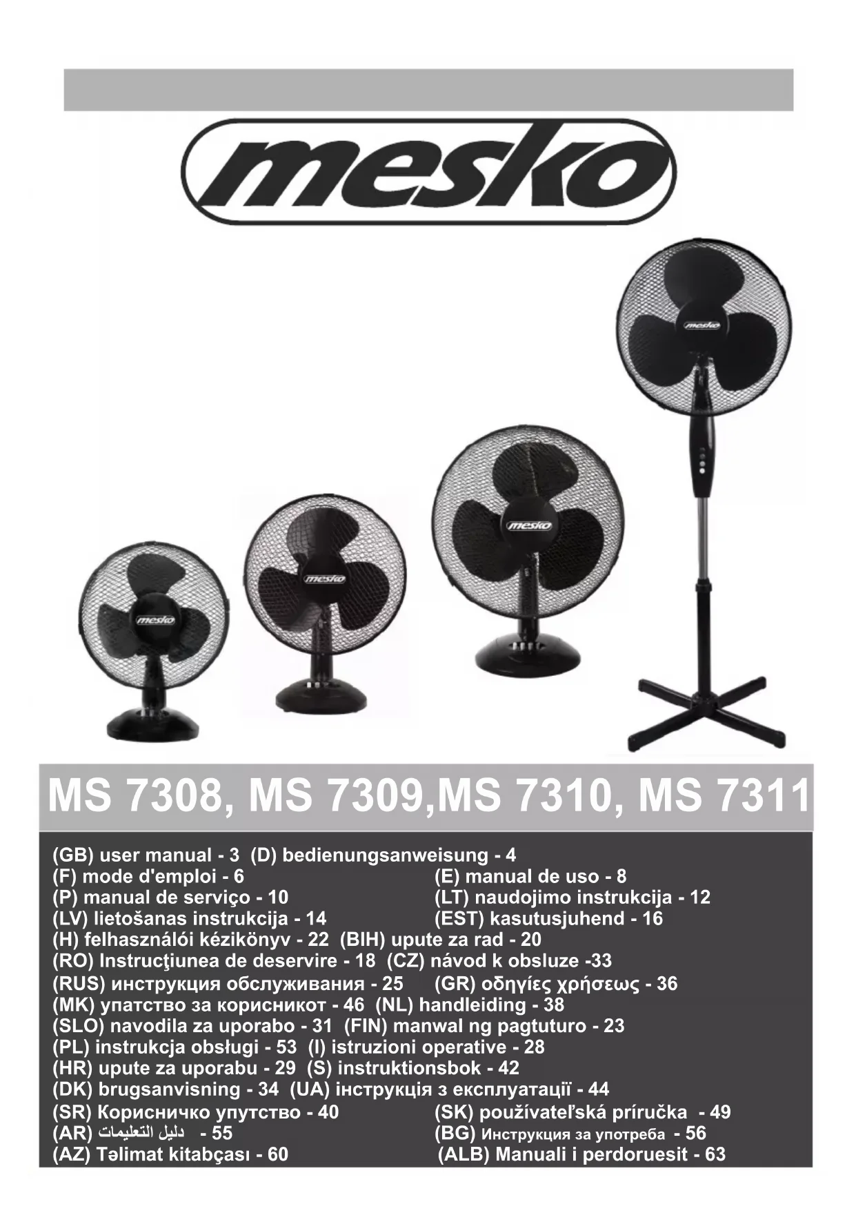 MS 7310 - Ventilateur Mesko - Notice d'utilisation et mode d'emploi gratuit
