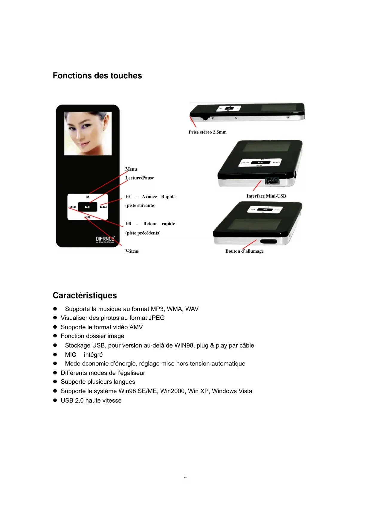 MP1020 - Lecteur mp3 Difrnce - Notice d'utilisation et mode d'emploi gratuit