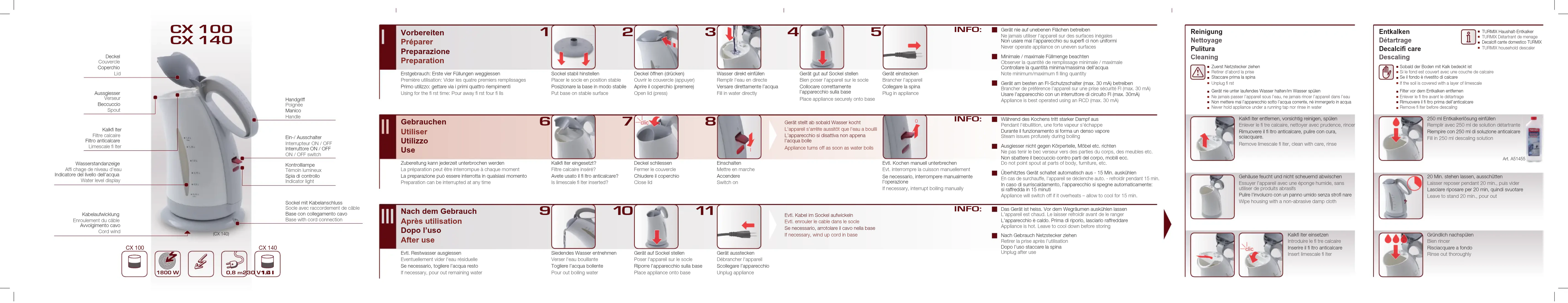 CX 100 - Bouilloire Turmix - Notice d'utilisation et mode d'emploi gratuit