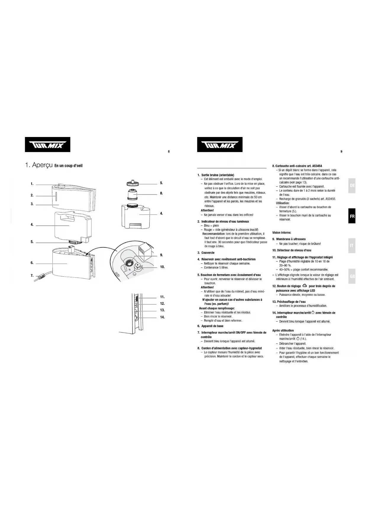 AX 410 - Humidificateur Turmix - Notice d'utilisation et mode d'emploi gratuit