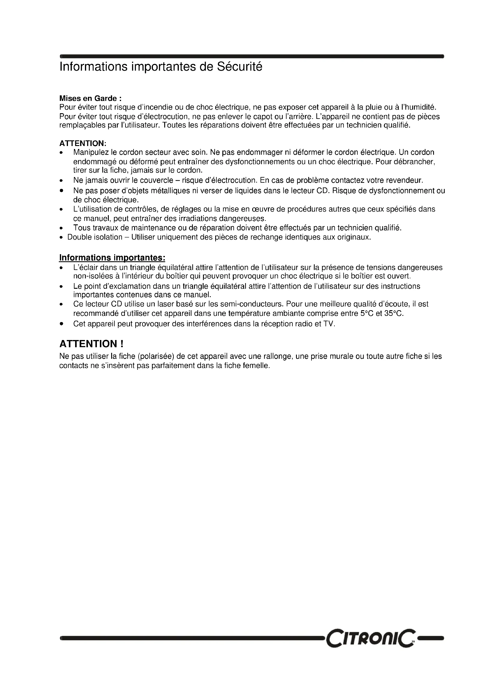 Retrouvez gratuitement la notice de l'appareil CD1.2 Citronic au format PDF.