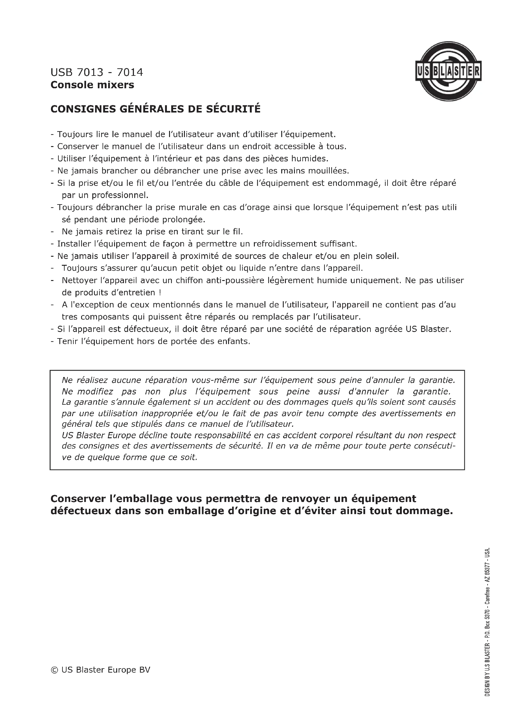 USB 7014 - Equipement DJ US Blaster - Notice d'utilisation et mode d'emploi gratuit