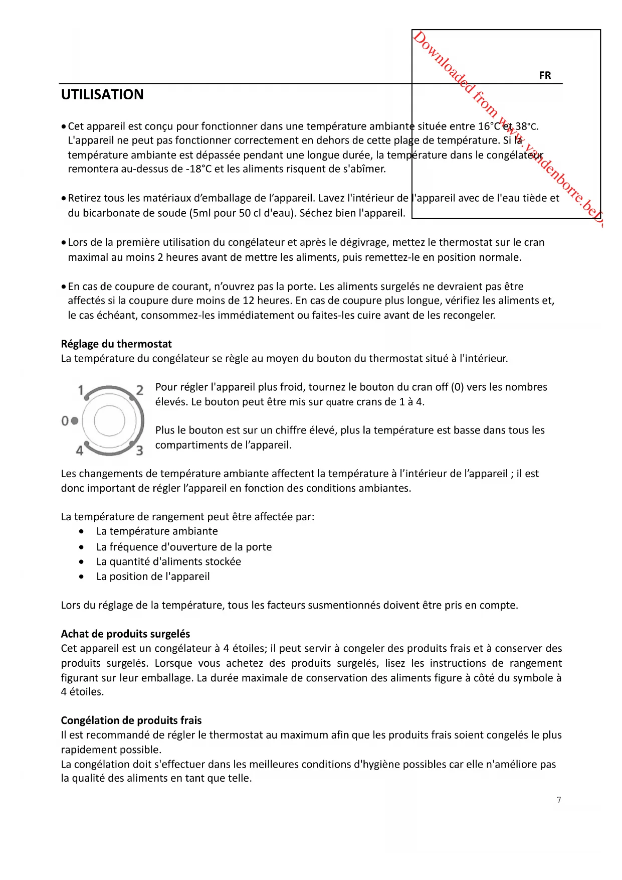 Congélationdeproduitsfrais Ilestrecommandéderéglerlethermostataumaximumafinquelesproduitsfraissoientcongelésleplus rapidementpossible. Lacongélationdoits'effectuerdanslesmeilleuresconditionsd'hygiènepossiblescarellen'améliorepas laqualitédesalimentsentantquetelle.Downloaded from www.vandenborre.beDownloaded from www.vandenborre.be