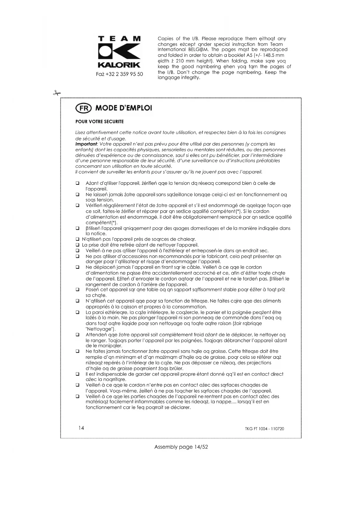 TKG FT 1004 - Friteuse TEAM - Notice d'utilisation et mode d'emploi gratuit