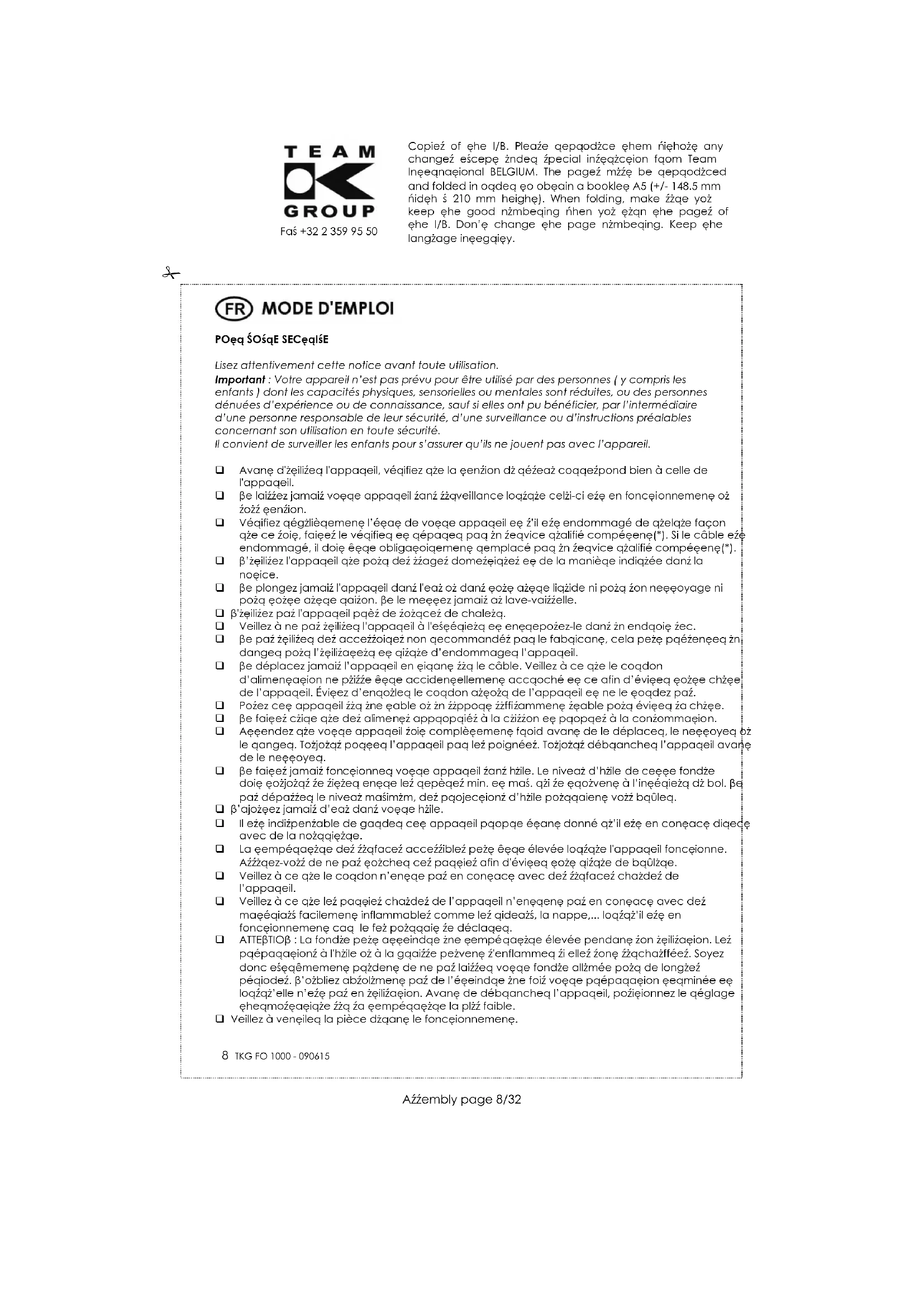Retrouvez gratuitement la notice de l'appareil TKG FO 1000 TEAM au format PDF.