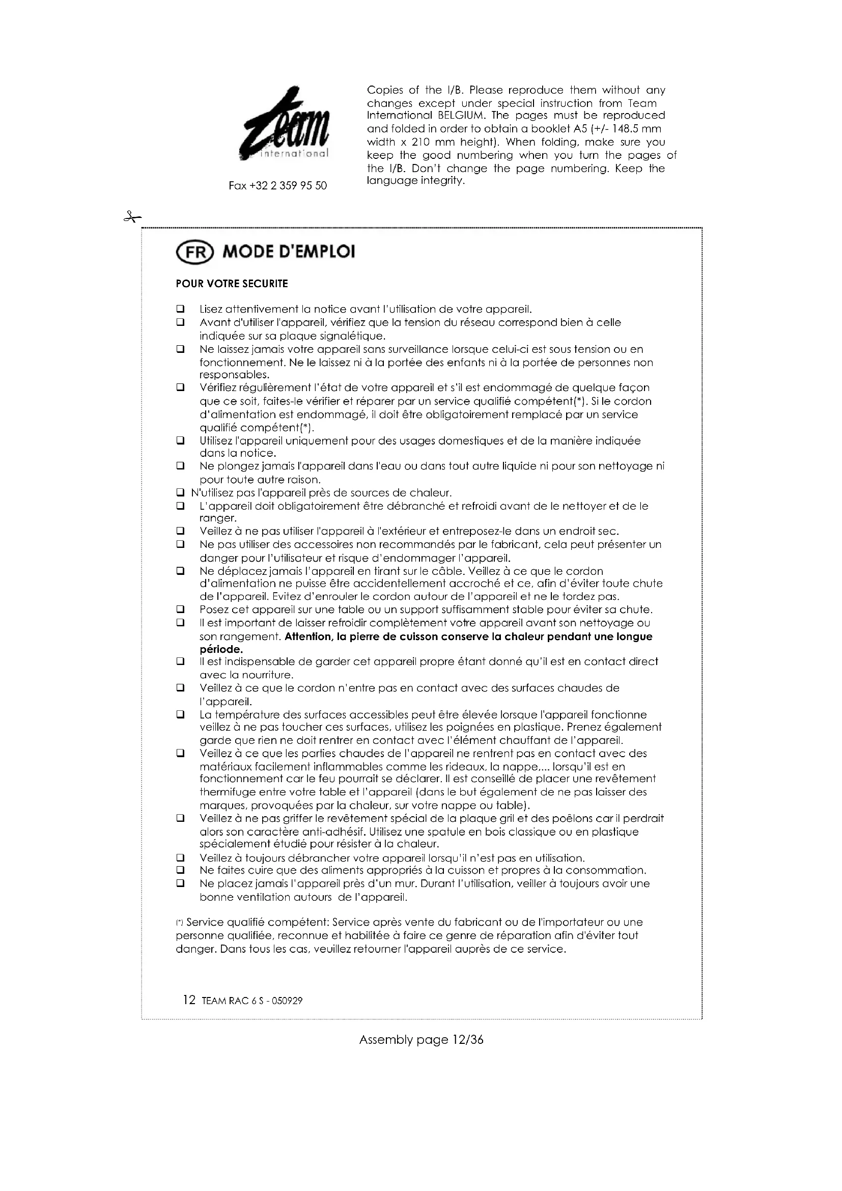 RAC 6 - Appareil à fondue, raclette et wok TEAM - Notice d'utilisation et mode d'emploi gratuit