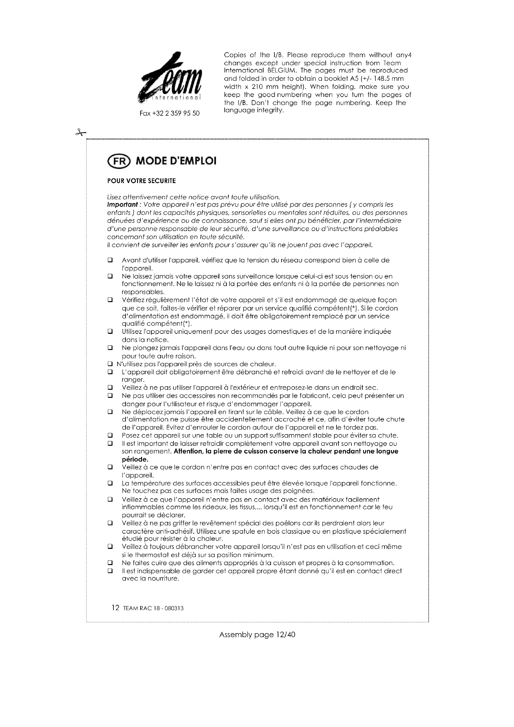 RAC 18 - Appareil à fondue, raclette et wok TEAM - Notice d'utilisation et mode d'emploi gratuit