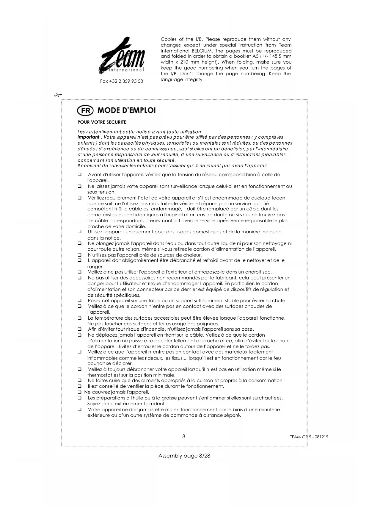 GR 9 - Plaque de grill TEAM - Notice d'utilisation et mode d'emploi gratuit