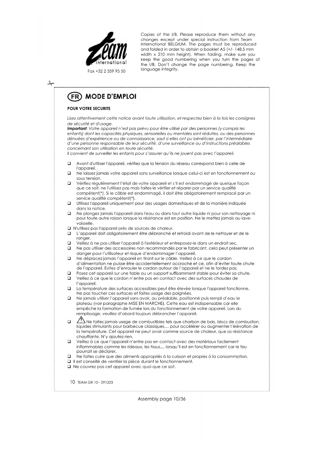 GR 10 - Barbecue TEAM - Notice d'utilisation et mode d'emploi gratuit