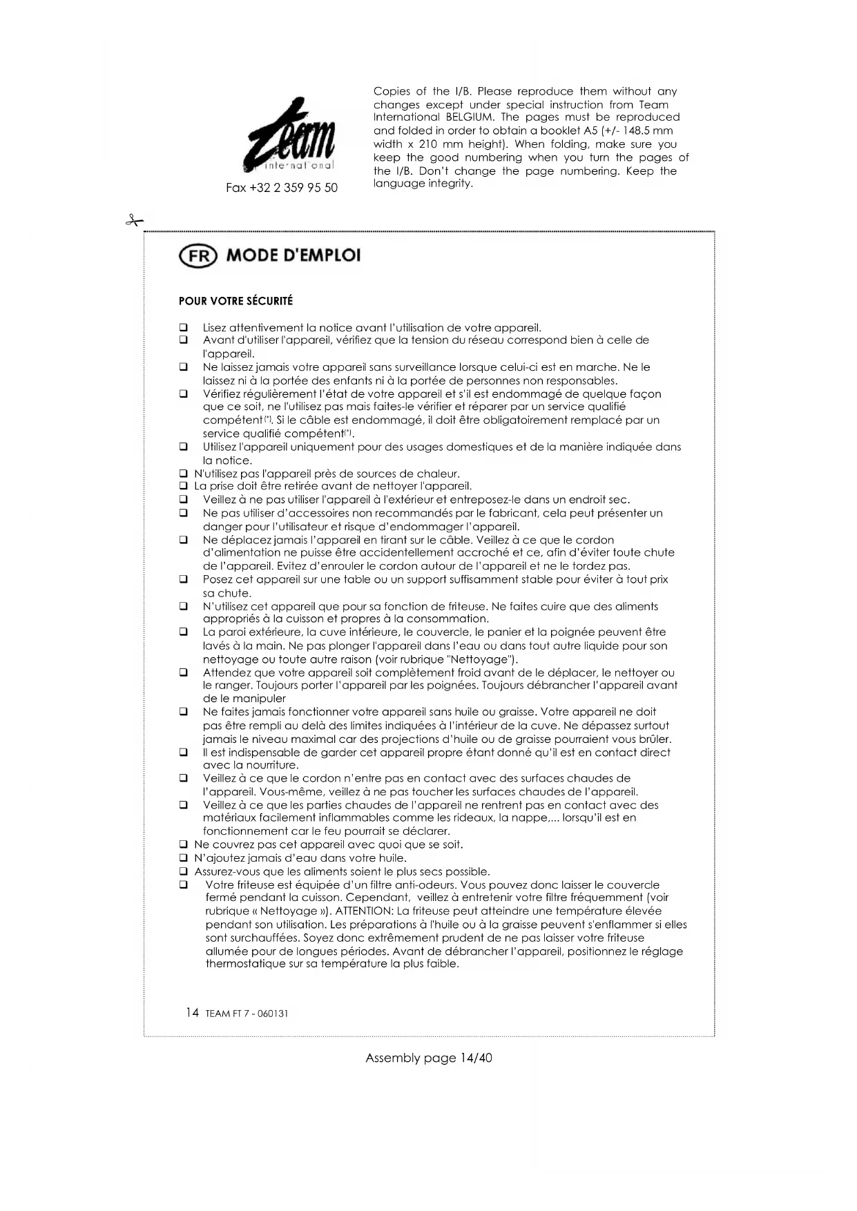 FT 7 - Friteuse TEAM - Notice d'utilisation et mode d'emploi gratuit