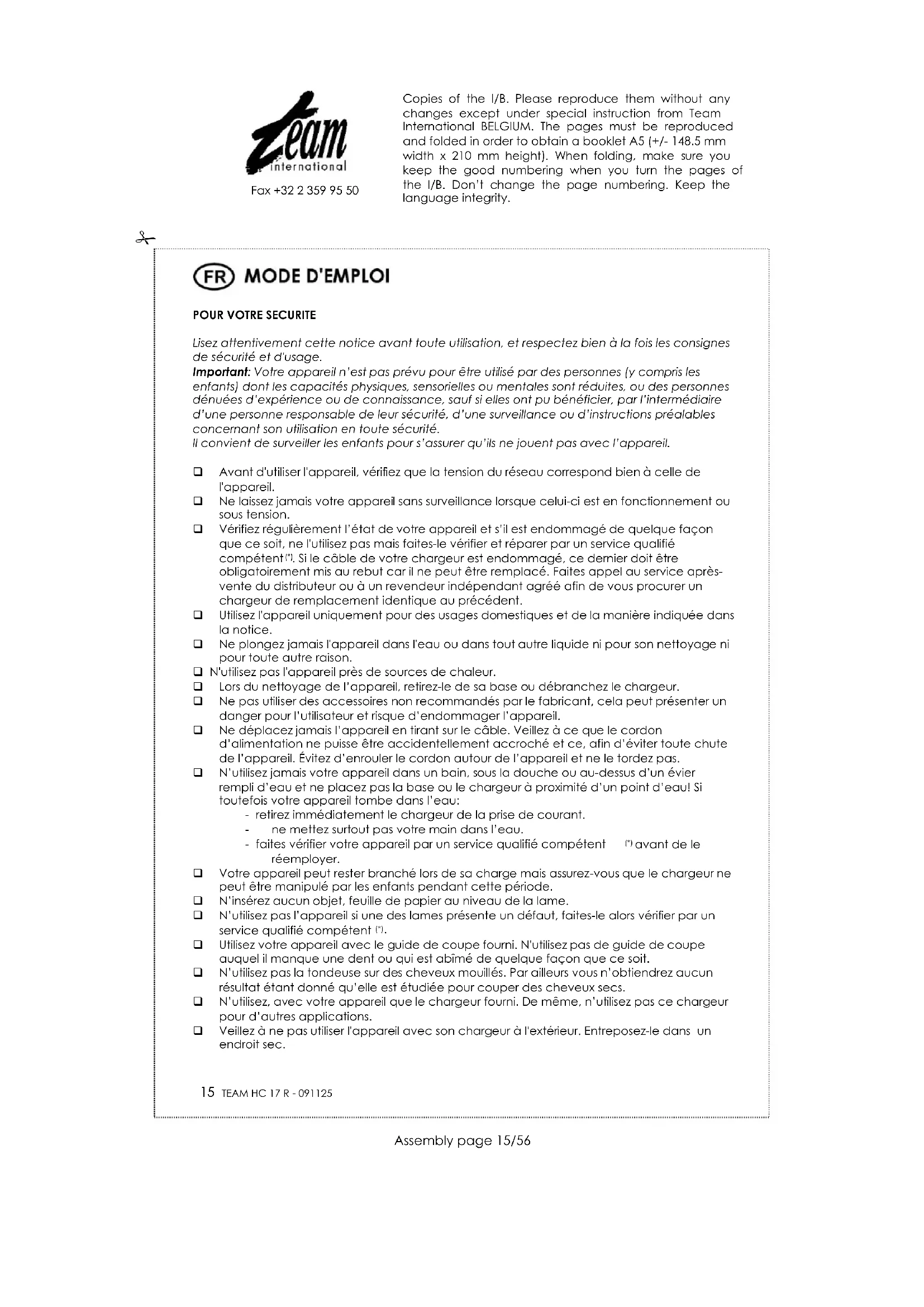Retrouvez gratuitement la notice de l'appareil HC 17 R TEAM au format PDF.