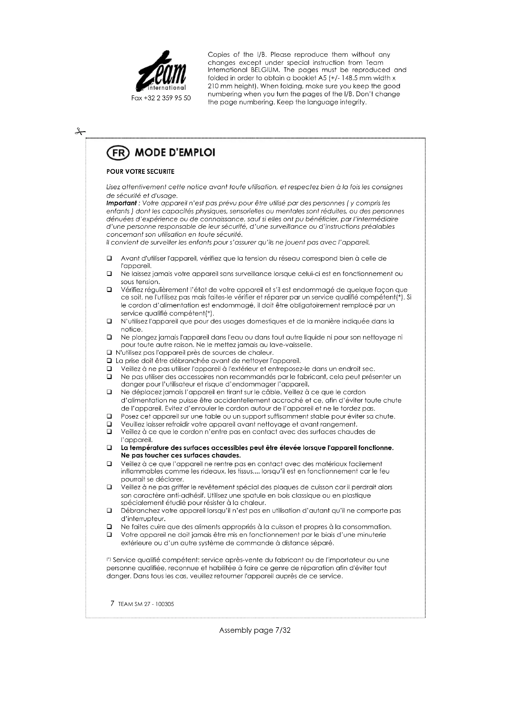 Retrouvez gratuitement la notice de l'appareil SM 27 TEAM au format PDF.