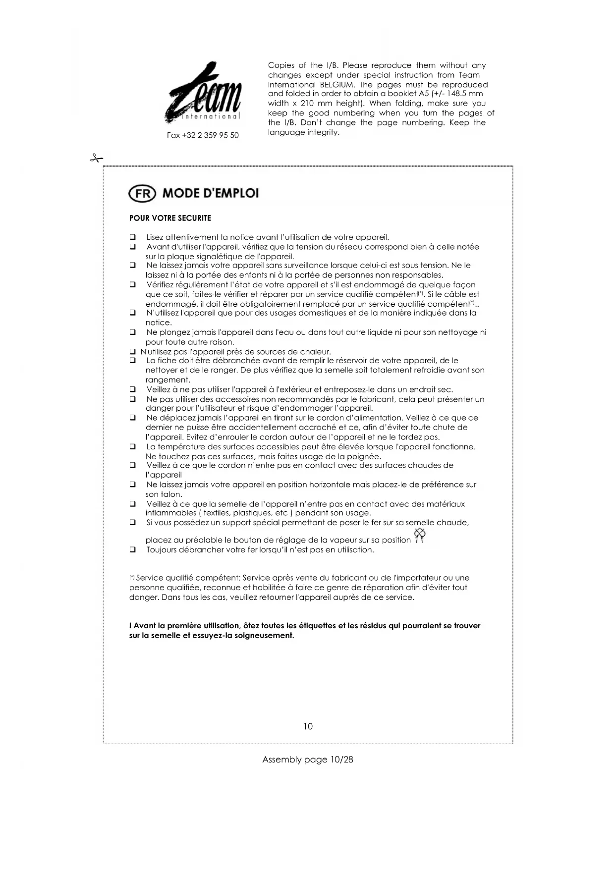 DAI 31 - Fer à repasser TEAM - Notice d'utilisation et mode d'emploi gratuit