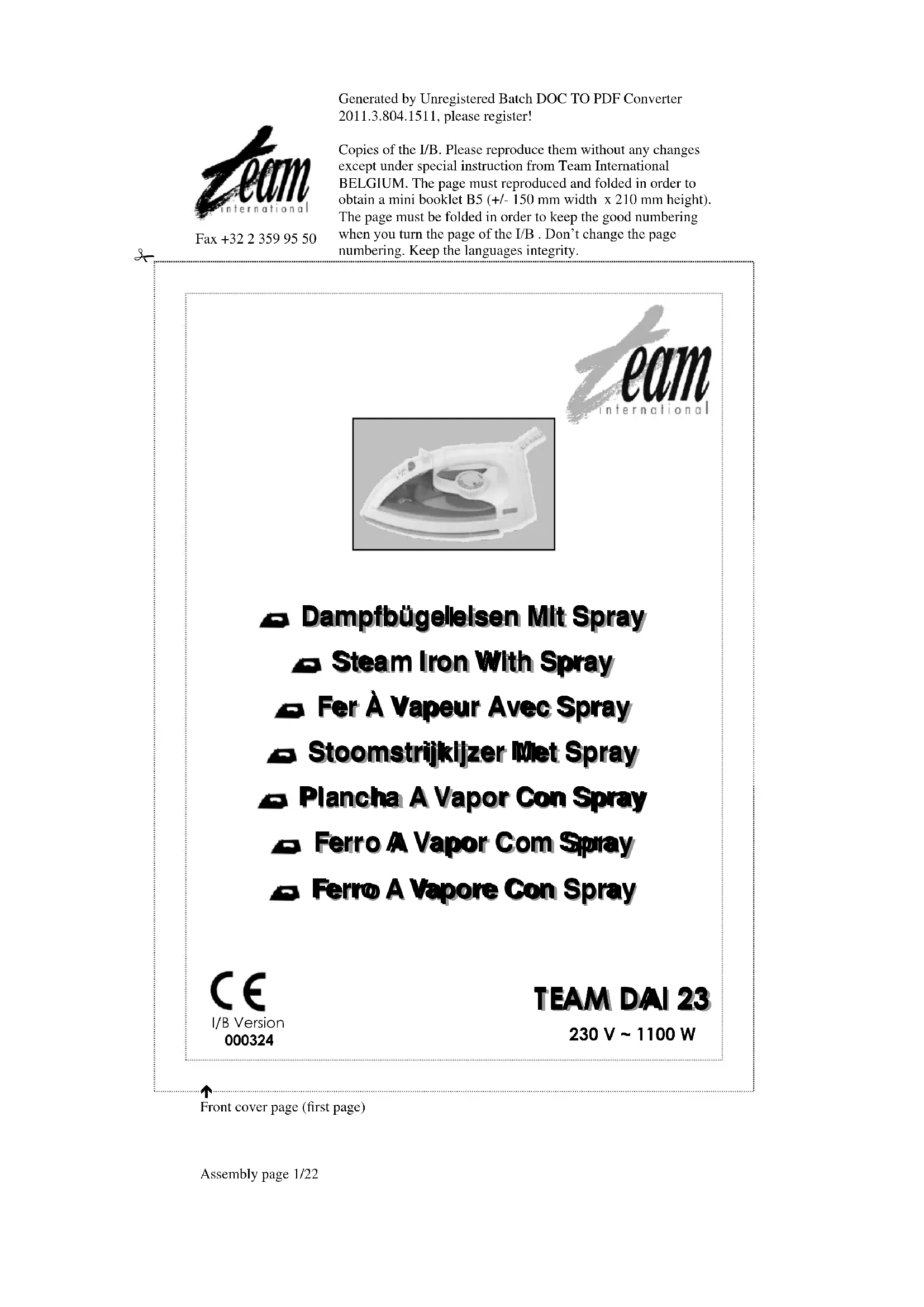 DAI 23 - Fer à repasser TEAM - Notice d'utilisation et mode d'emploi gratuit