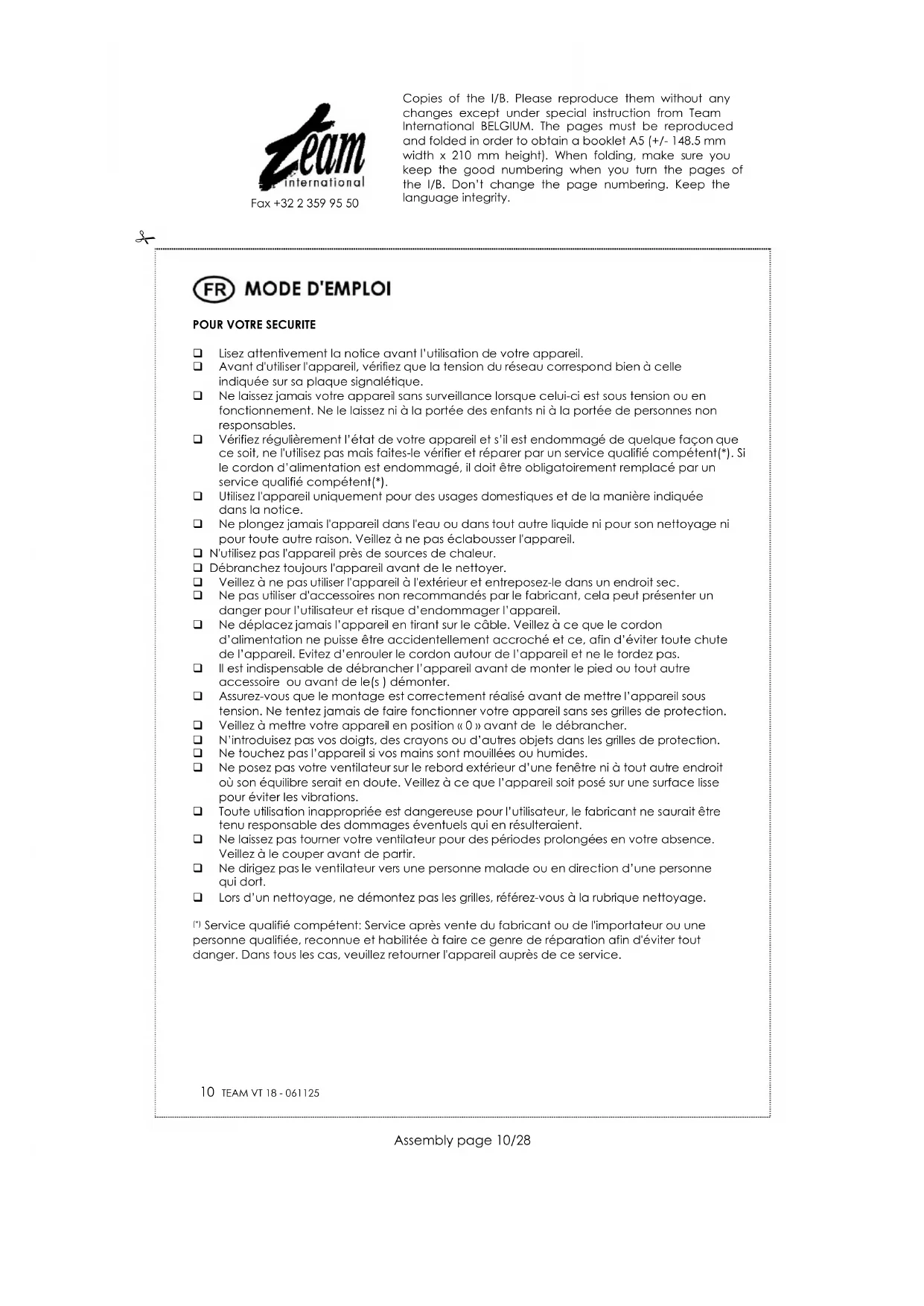 VT 18 - Ventilateur TEAM - Notice d'utilisation et mode d'emploi gratuit